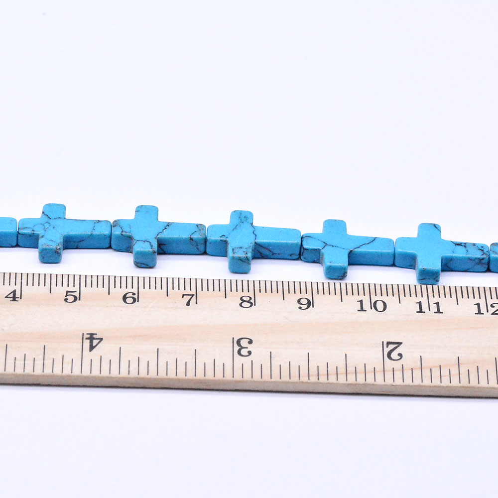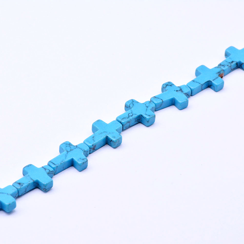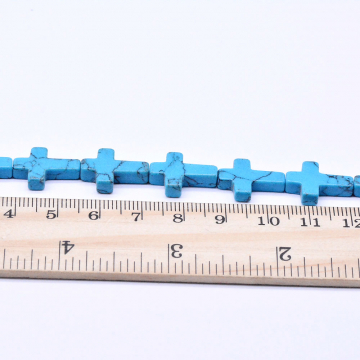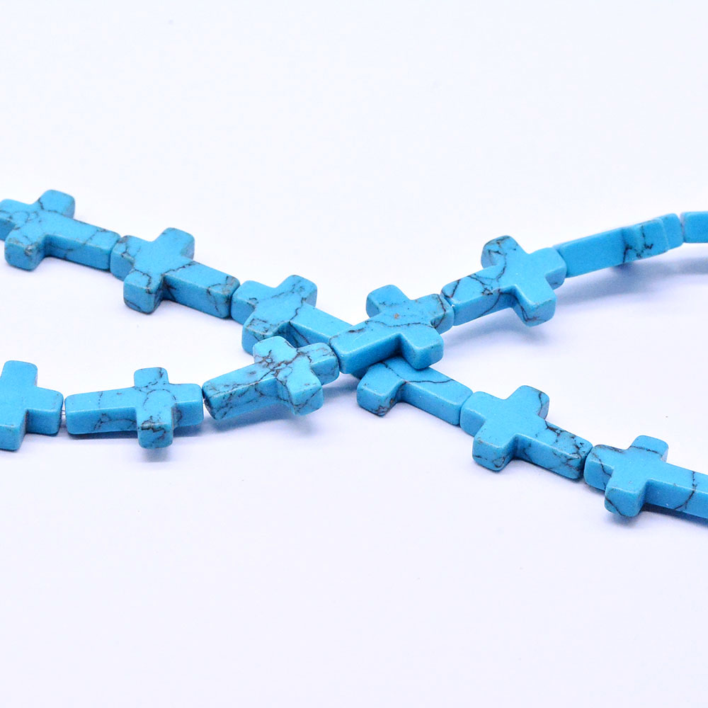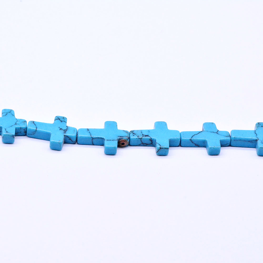 天然石ビーズ ターコイズブラックラインストーン 十字型 12x16mm 1連(約24ヶ)