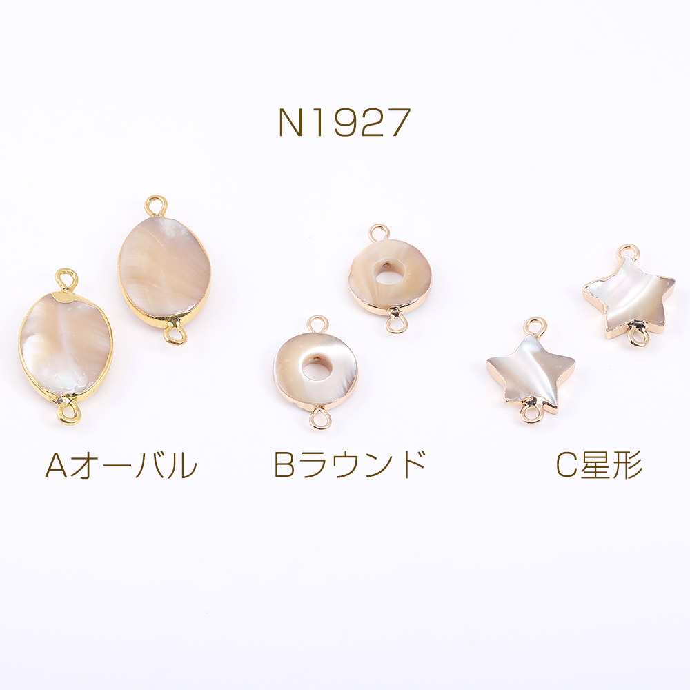 高品質シェルコネクターチャーム オーバル/ラウンド/星形 2カン ゴールド(1ヶ)