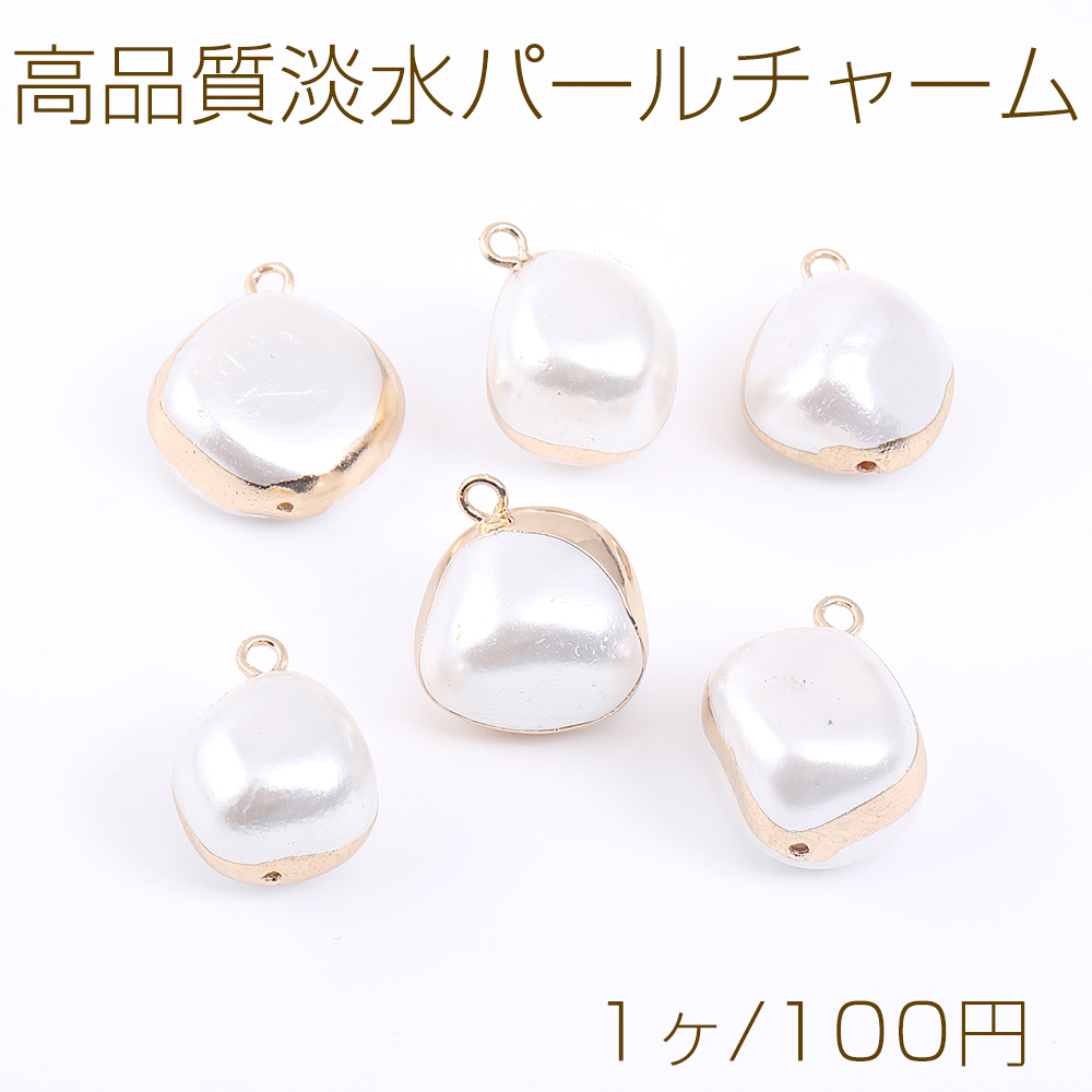 高品質淡水パールチャーム 不規則型 1カン 13-18mm ゴールド/ホワイト(1ヶ)