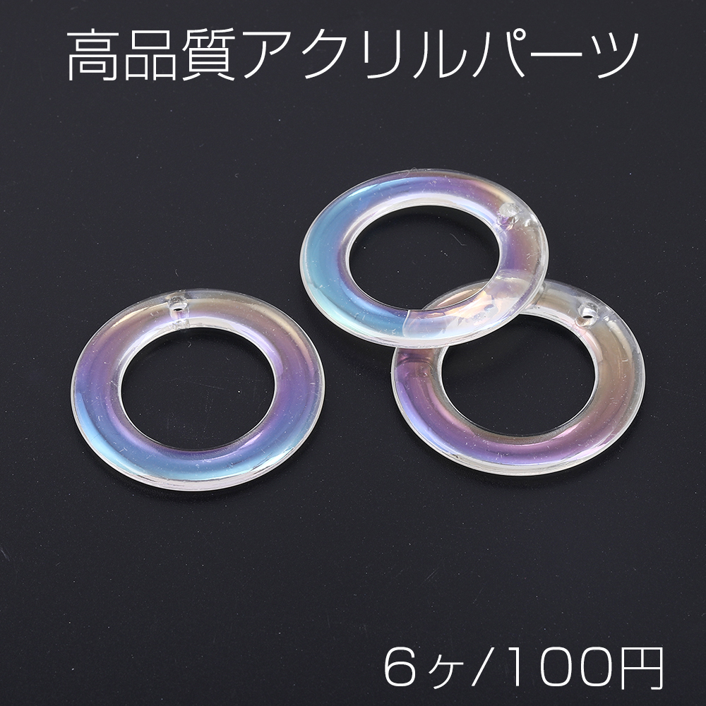 高品質アクリルパーツ 丸フレーム 1穴 40mm クリアAB オーロラカラー(6ヶ)