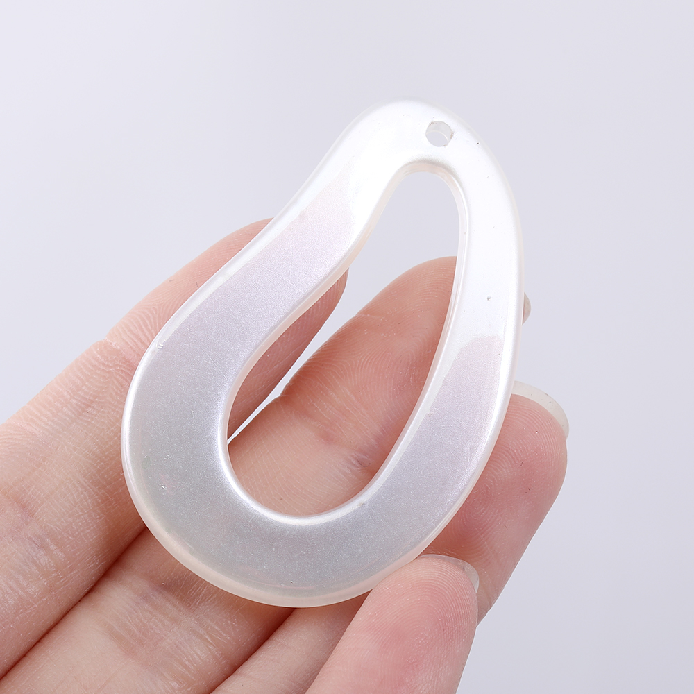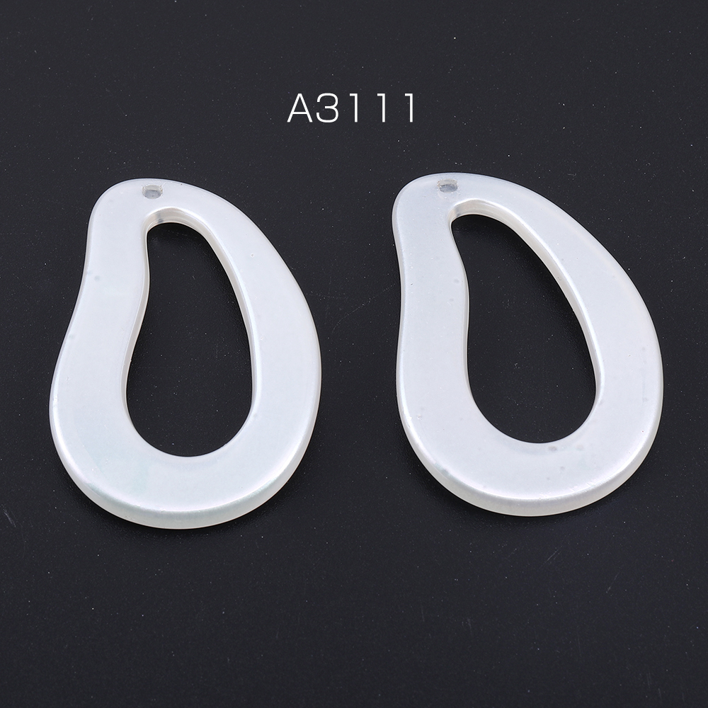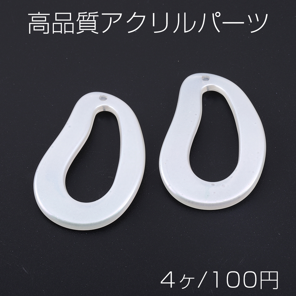 高品質アクリルパーツ 変形しずく型 1穴 32×51mm ホワイトAB オーロラカラー(4ヶ)
