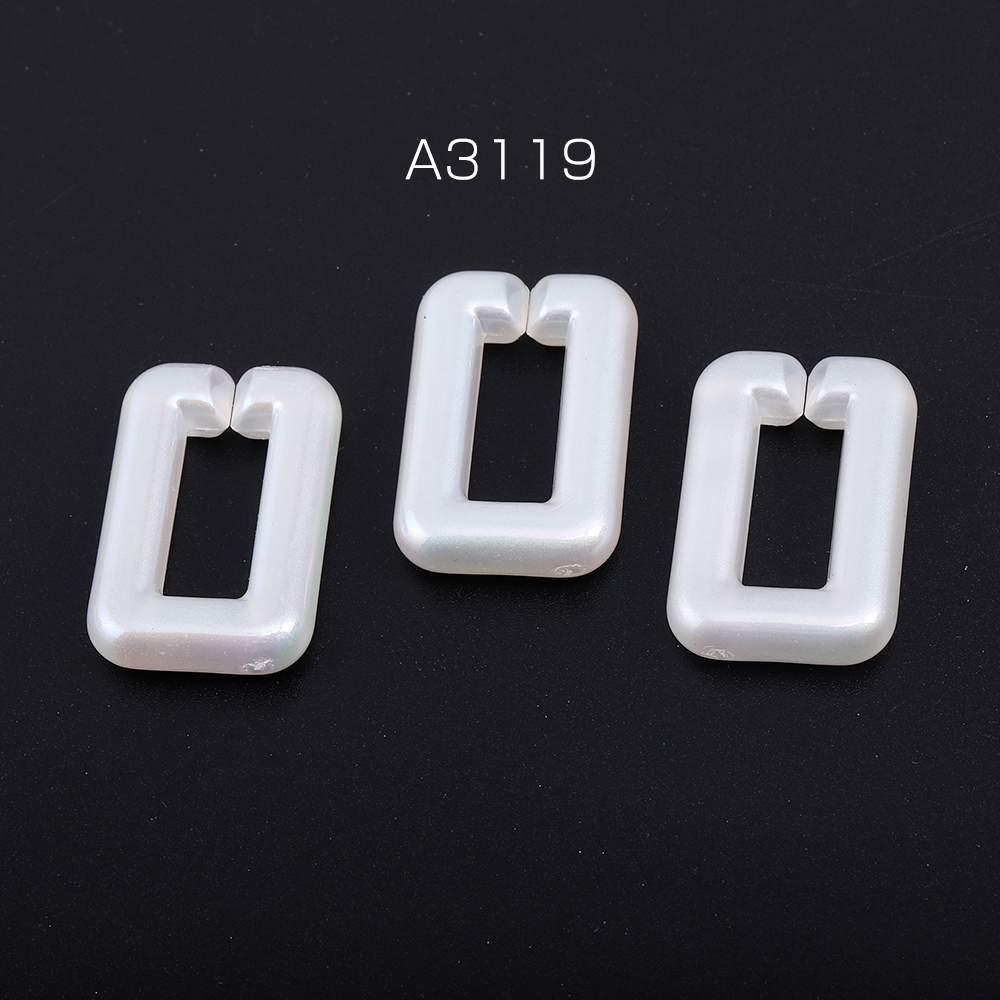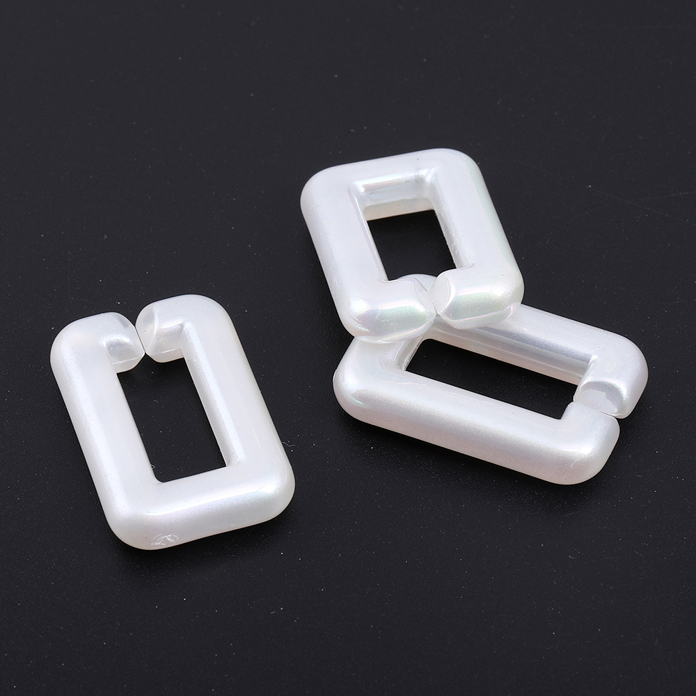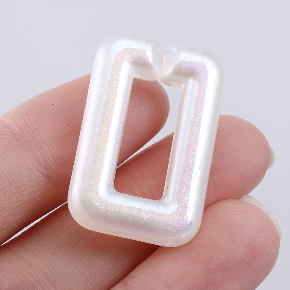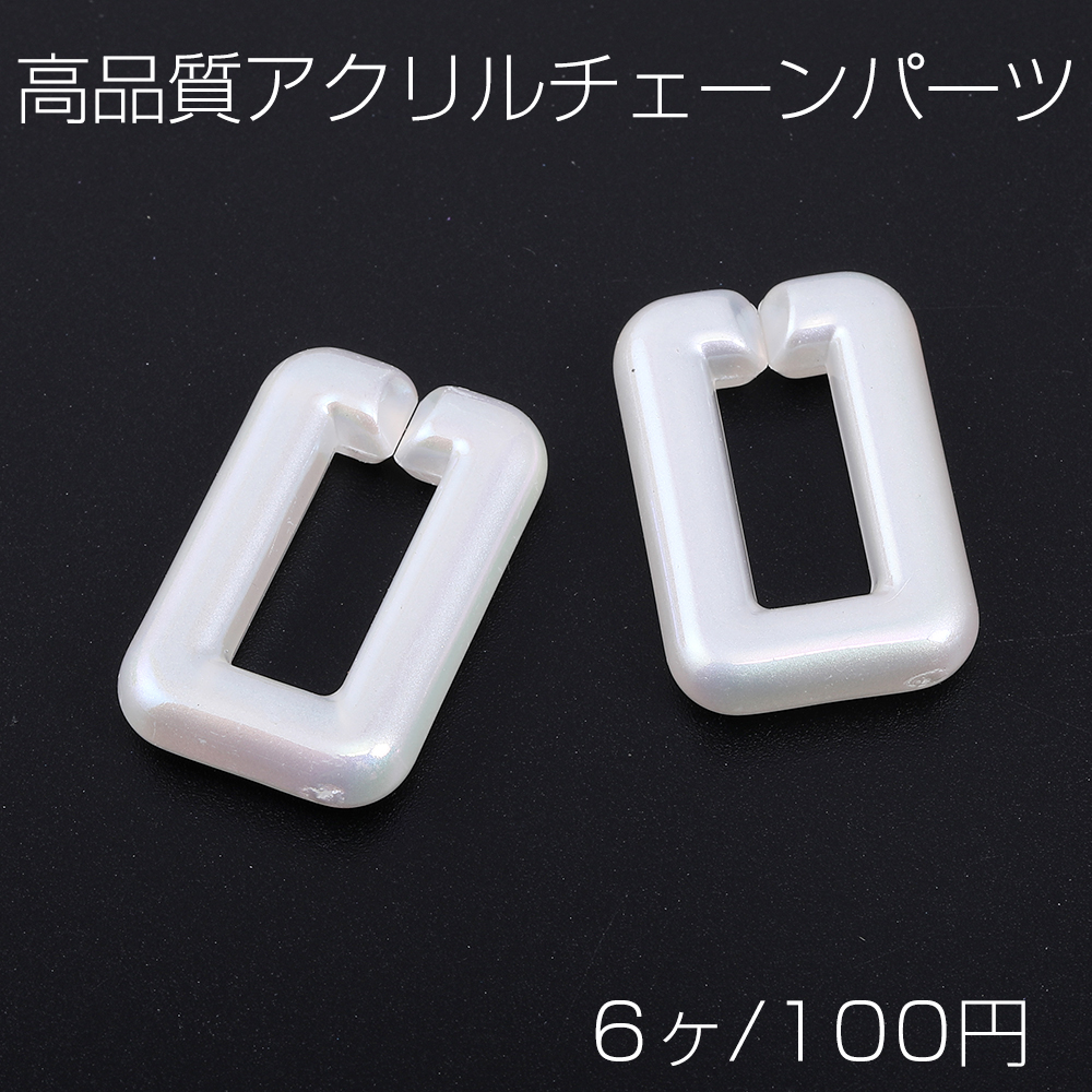 高品質アクリルチェーンパーツ 長方形型 19×30mm ホワイトAB オーロラカラー(6ヶ)