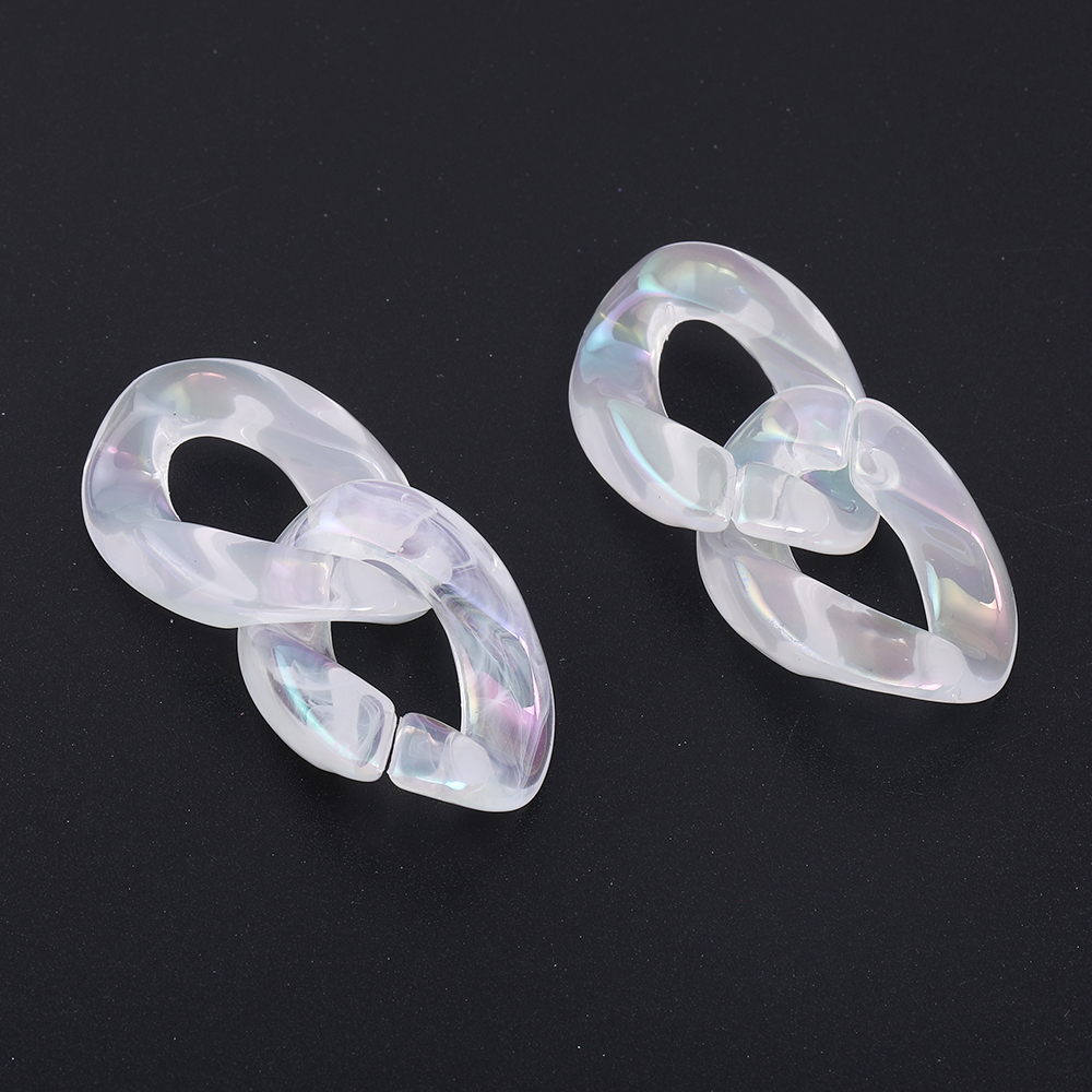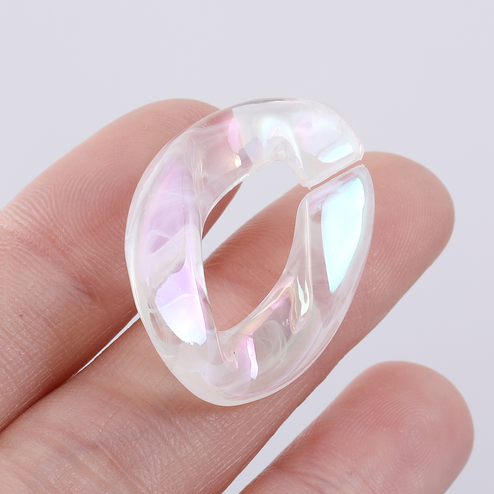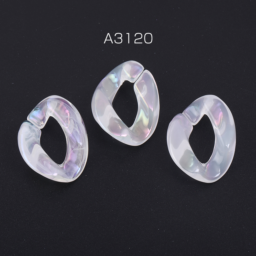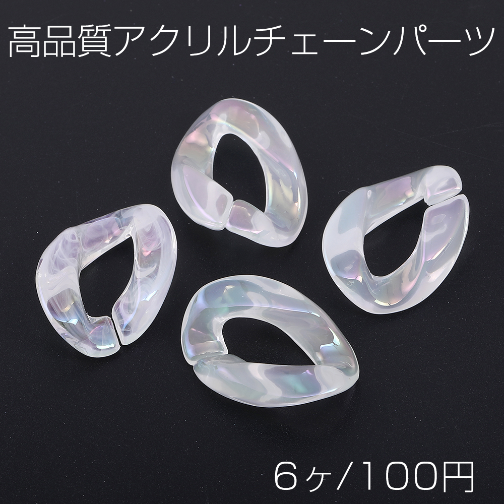 高品質アクリルチェーンパーツ ツイスト 22×30mm クリアホワイトAB オーロラカラー(6ヶ)
