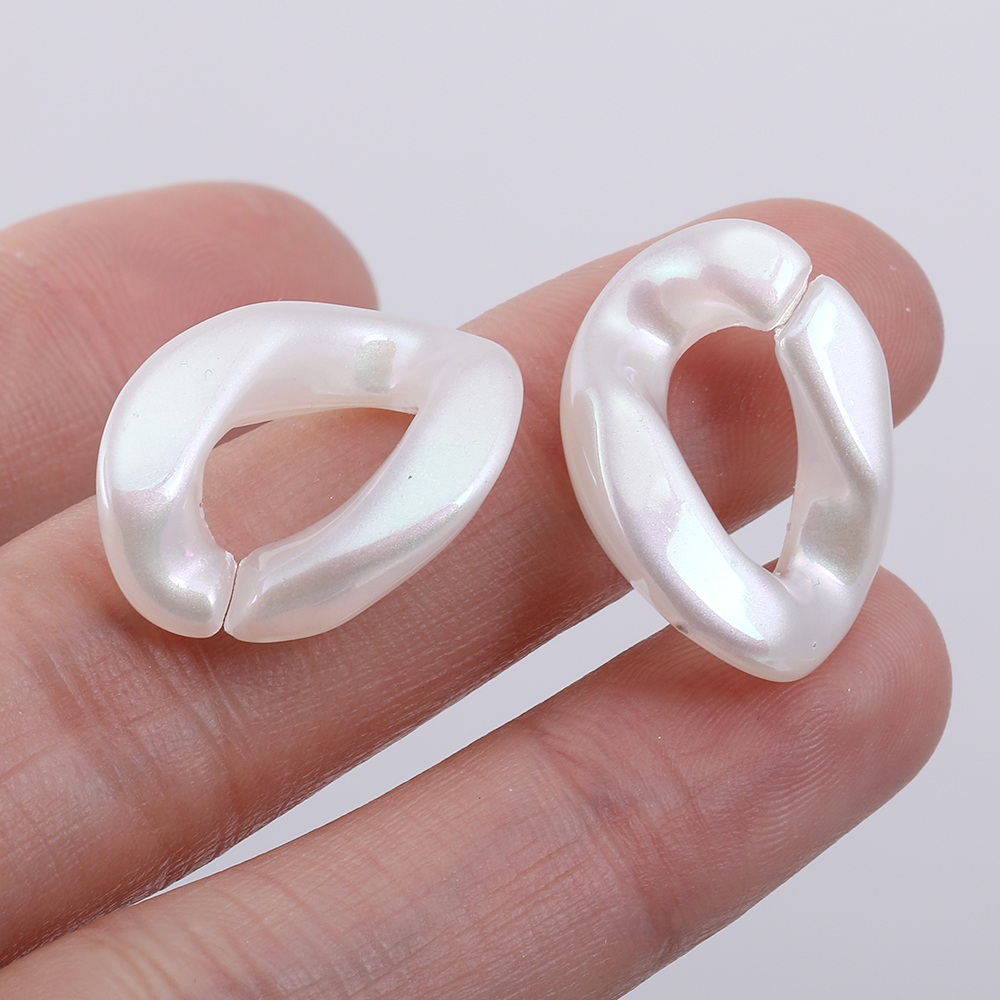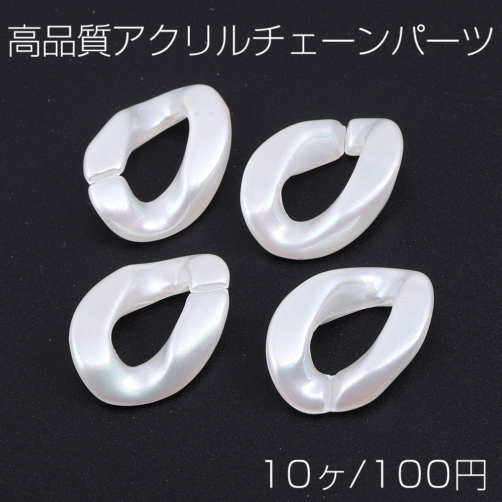 高品質アクリルチェーンパーツ ツイスト 17×23mm ホワイトAB オーロラカラー(10ヶ)
