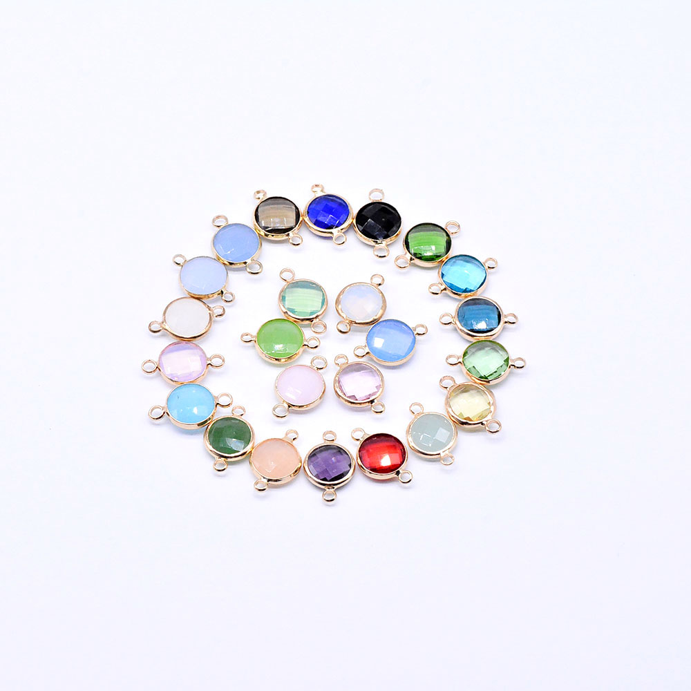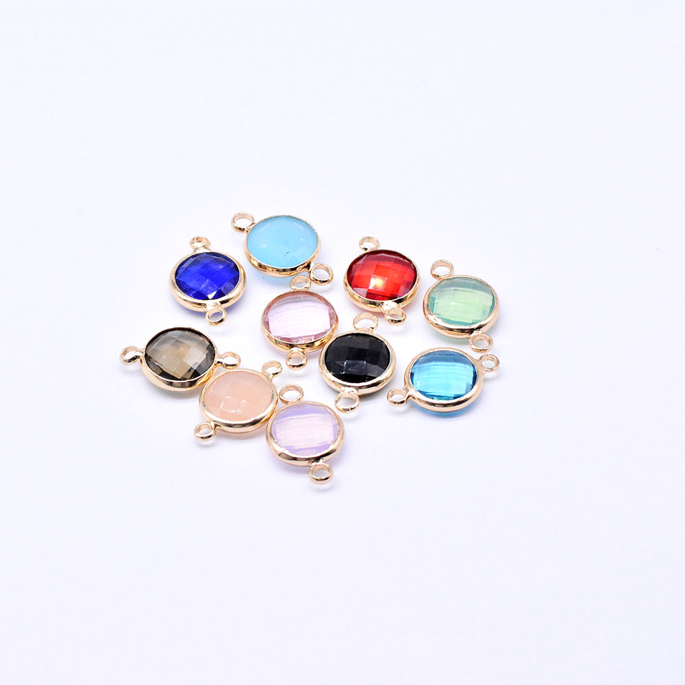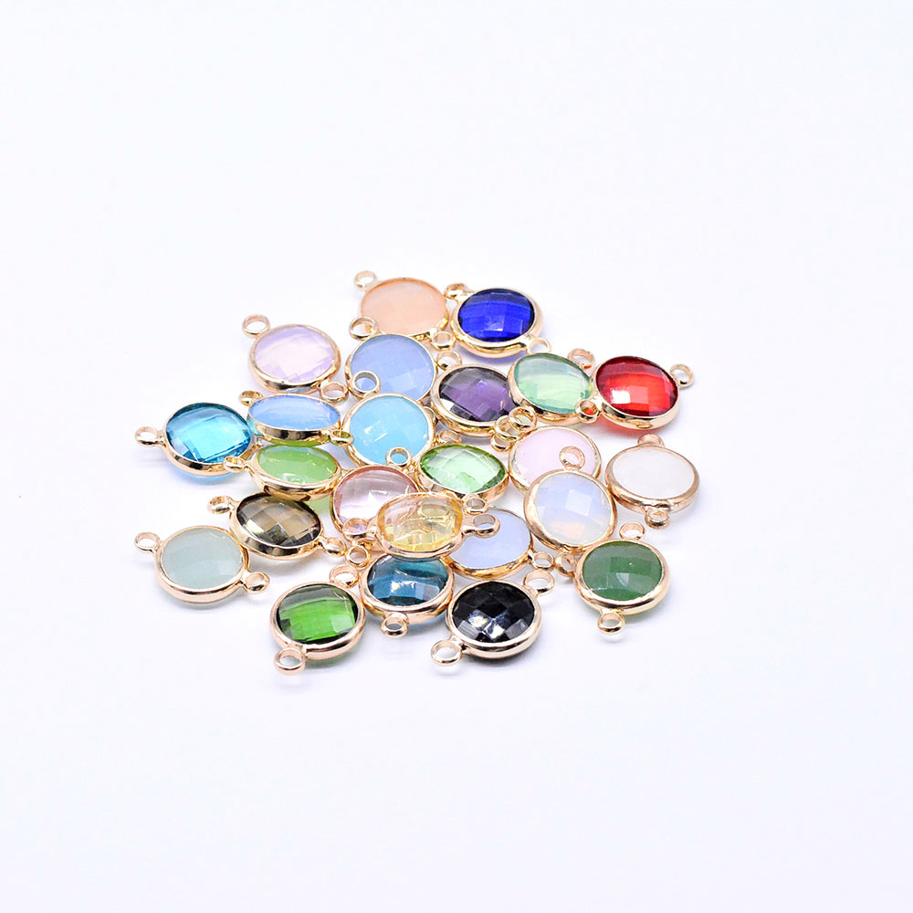 ガラスチャーム 円形カット 2カンつき 11×17mm (10ヶ)