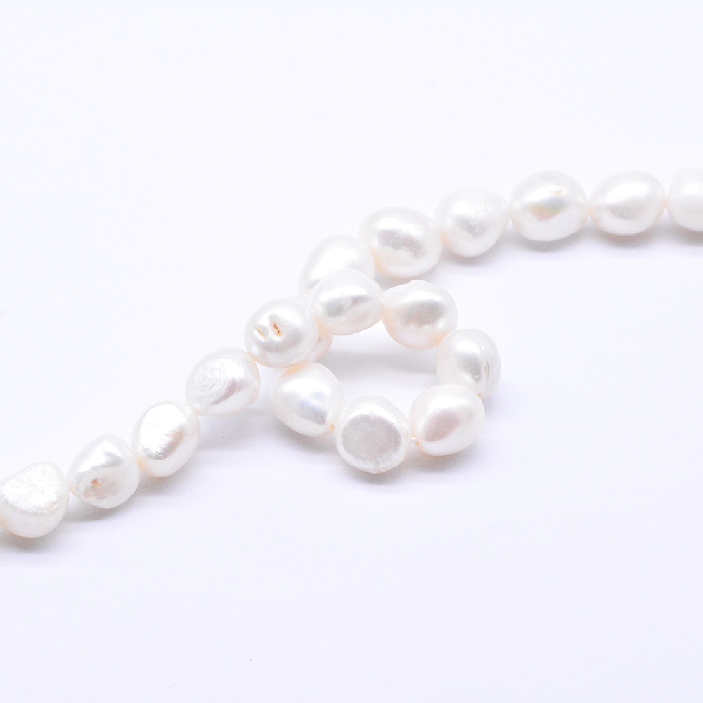 高品質淡水パールビーズ 不規則型 天然素材 ホワイト10-11mm【1連(約32ヶ)】