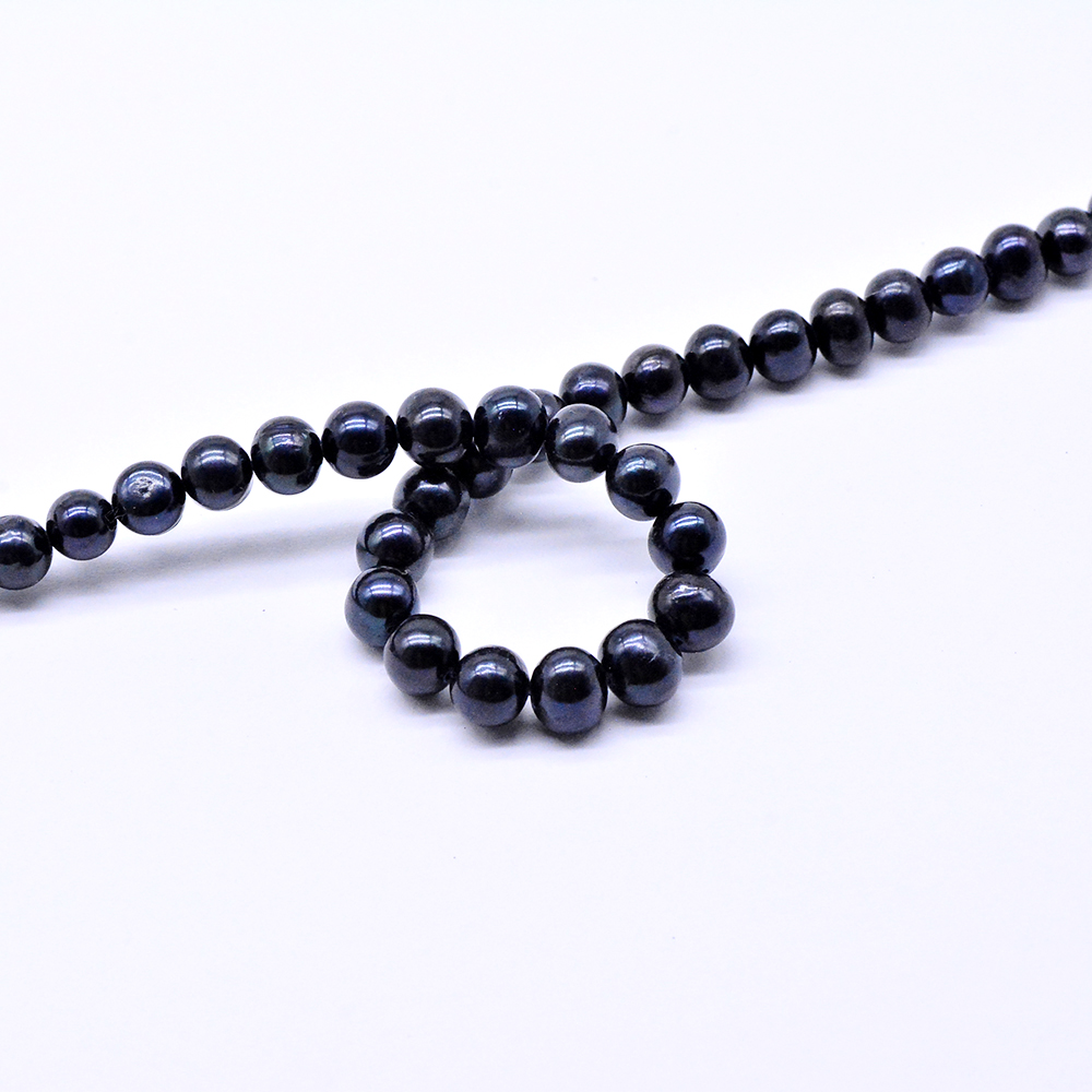 高品質淡水パールビーズ 丸玉 天然素材 ブラック 7-8mm【1連(約58ヶ)】