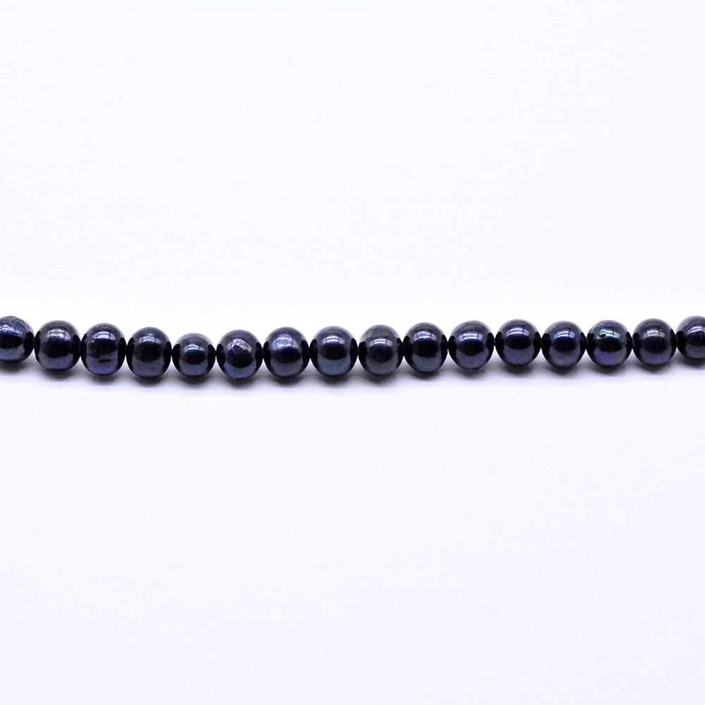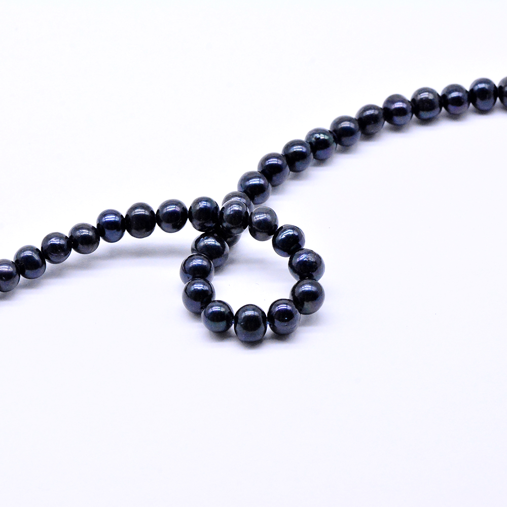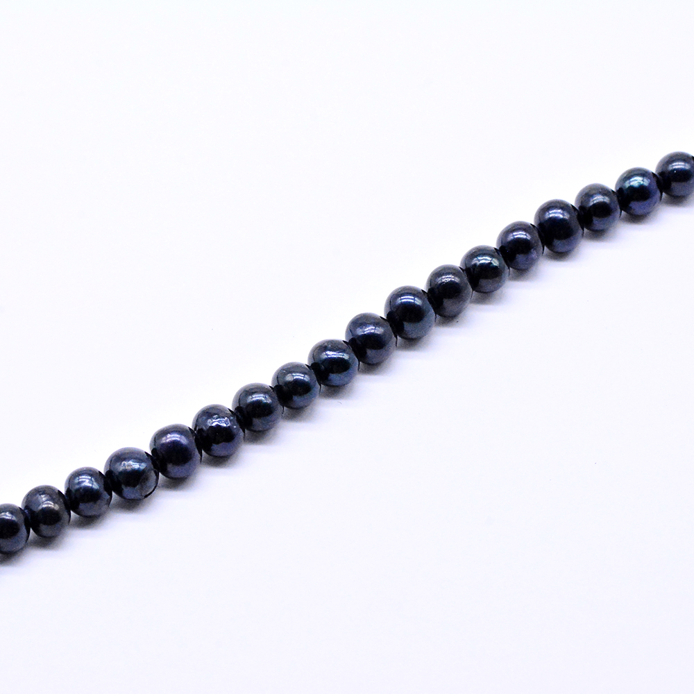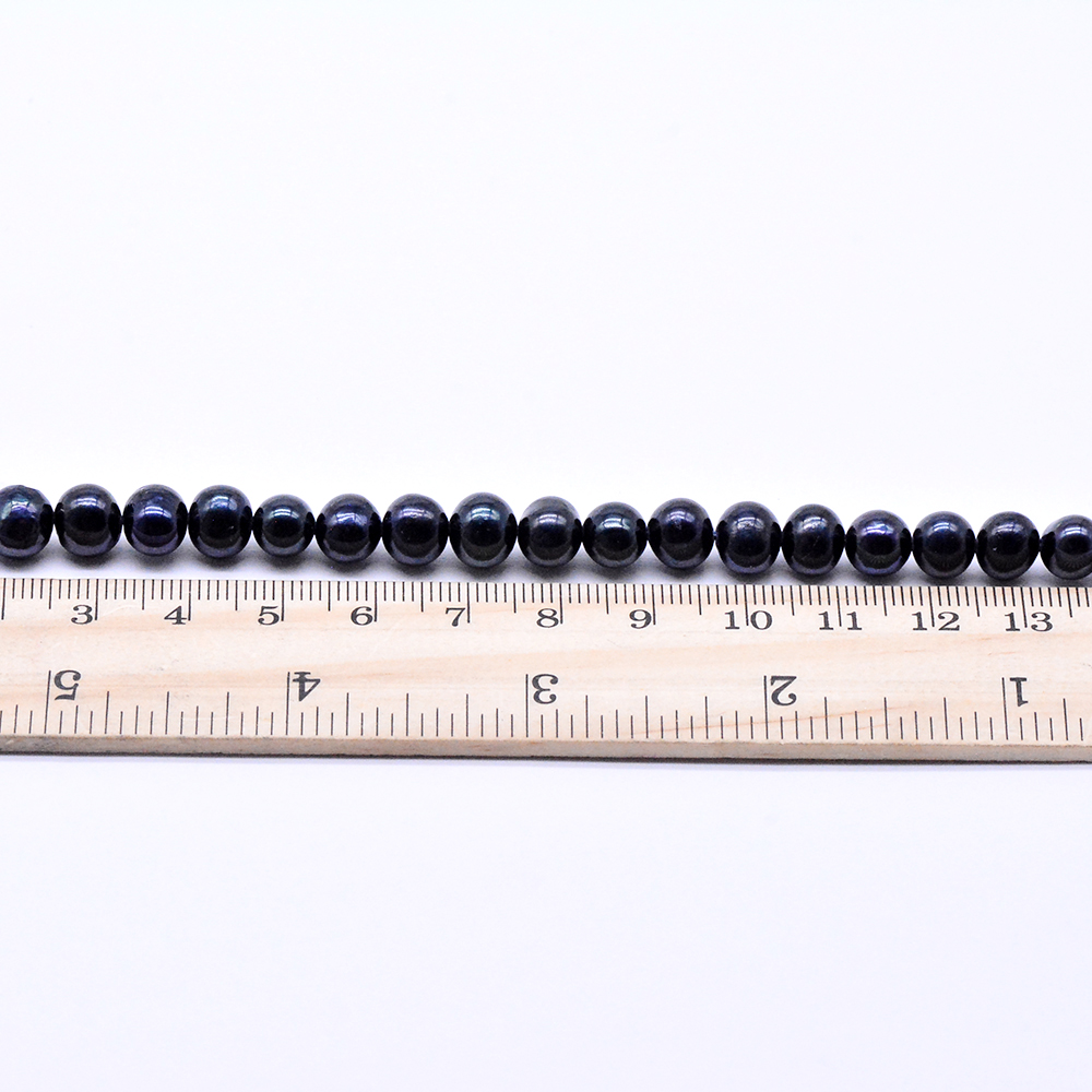 高品質淡水パールビーズ 丸玉 天然素材 ブラック 7-8mm【1連(約57ヶ)】