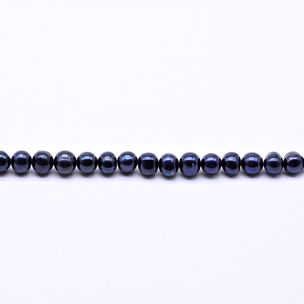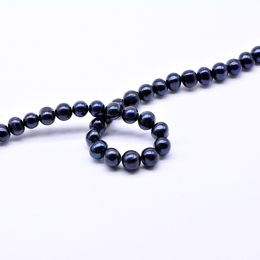 高品質淡水パールビーズ 丸玉 天然素材 ブラック 7-8mm【1連(約59ヶ)】
