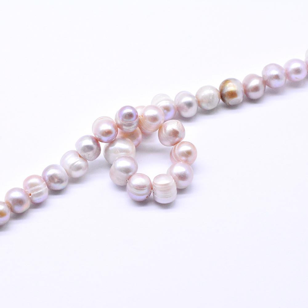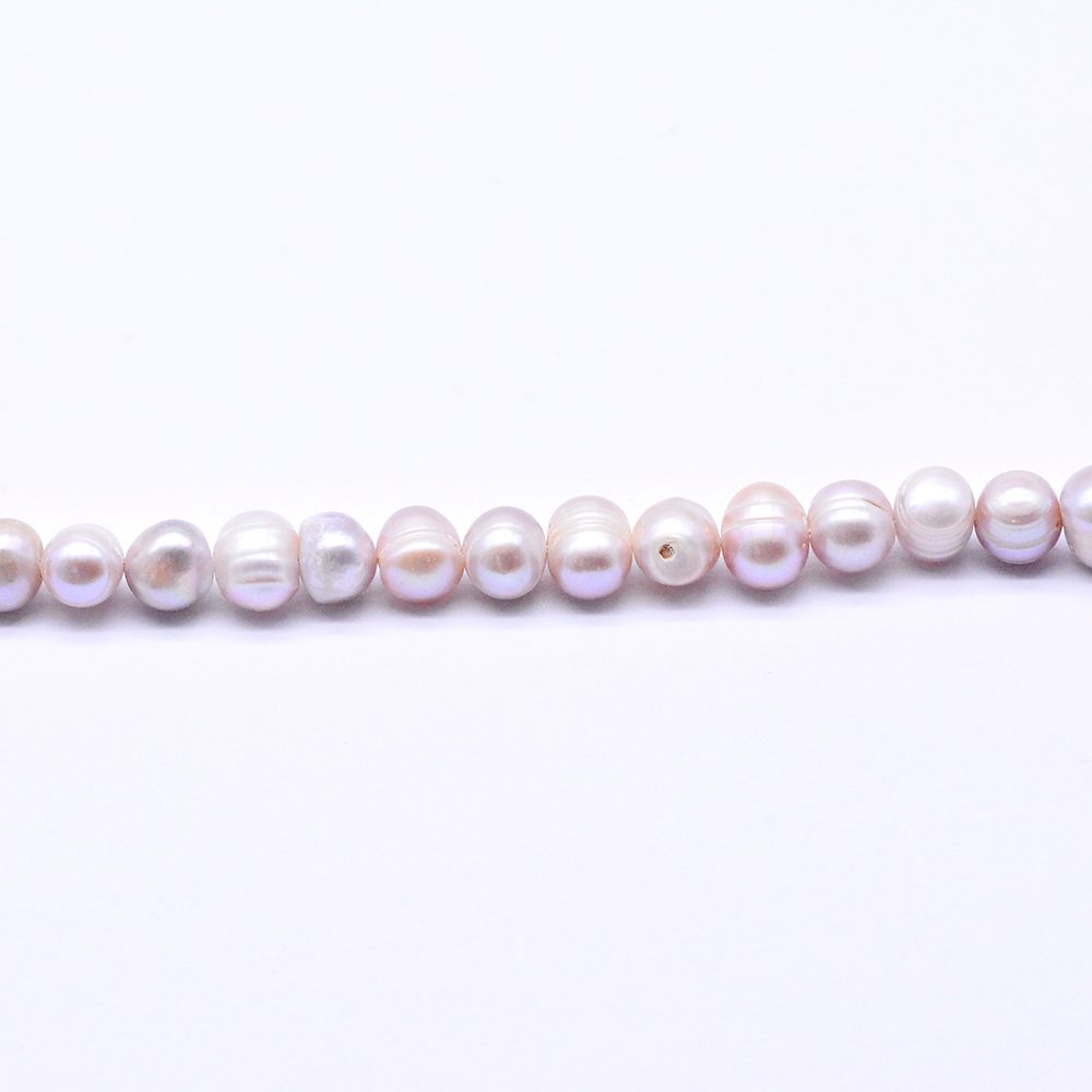 高品質淡水パールビーズ オーバル 天然素材 ライトパープル 8-9mm【1連(約46ヶ)】