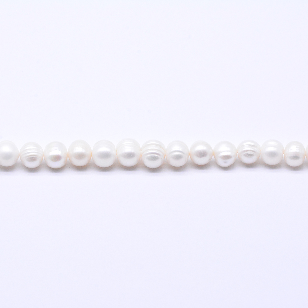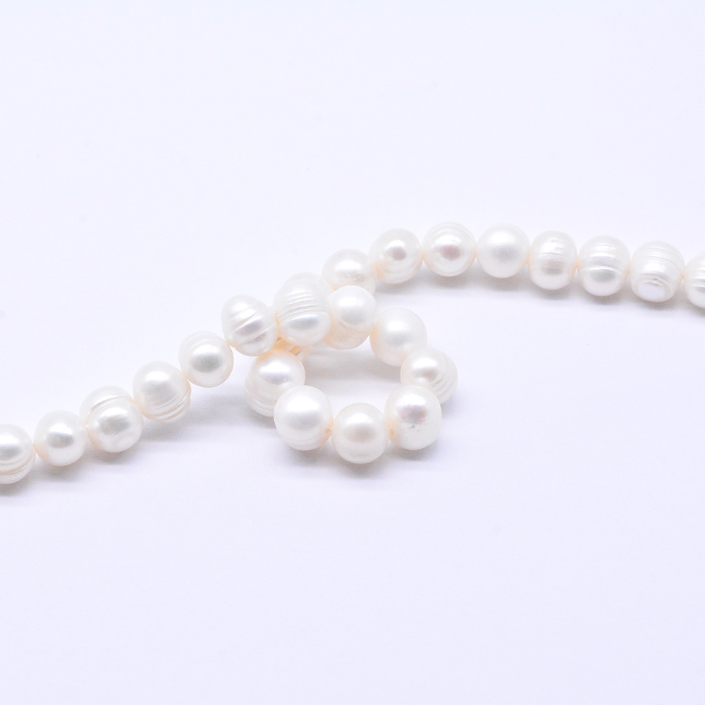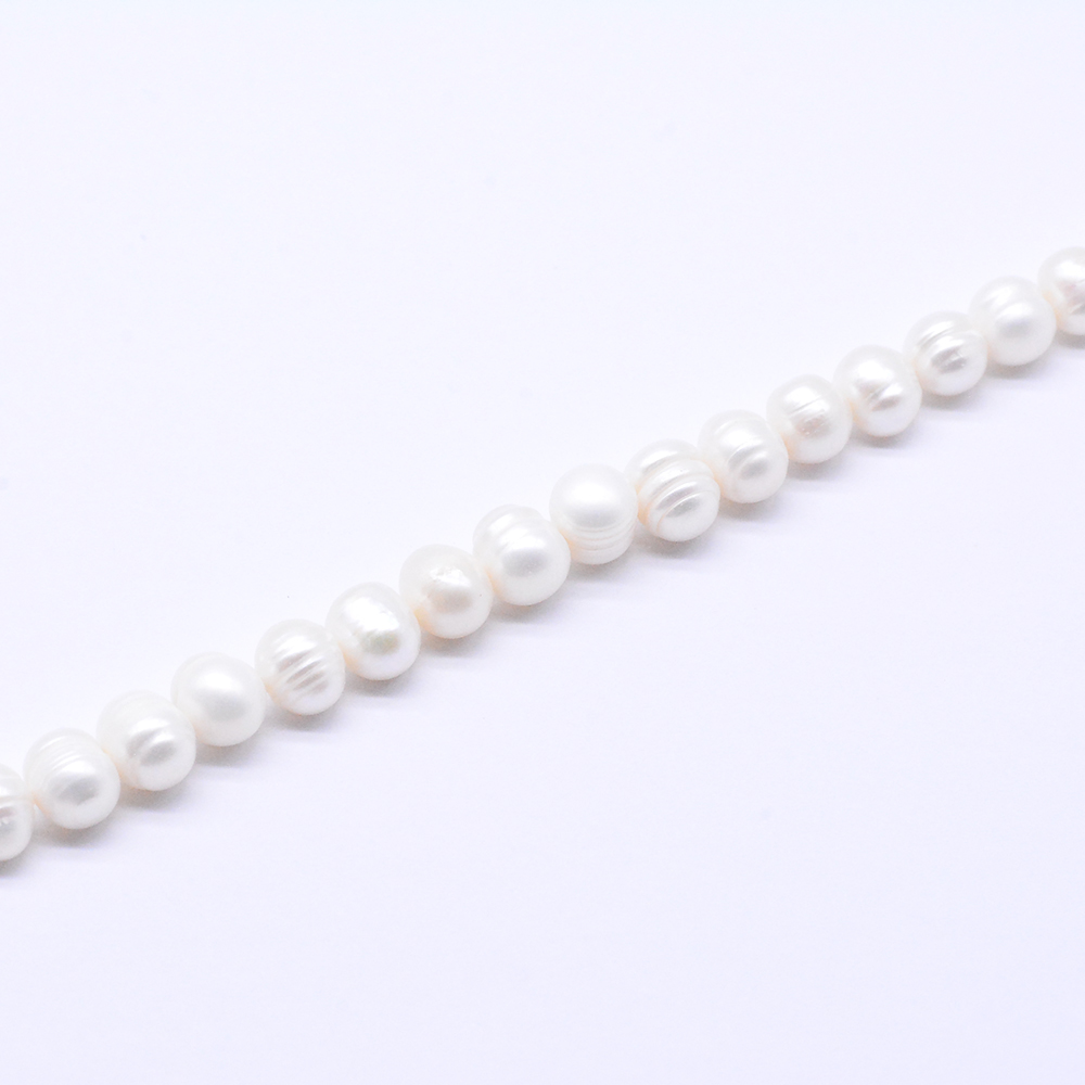 高品質淡水パールビーズ オーバル 天然素材 ホワイト 8-9mm【1連(約46ヶ)】