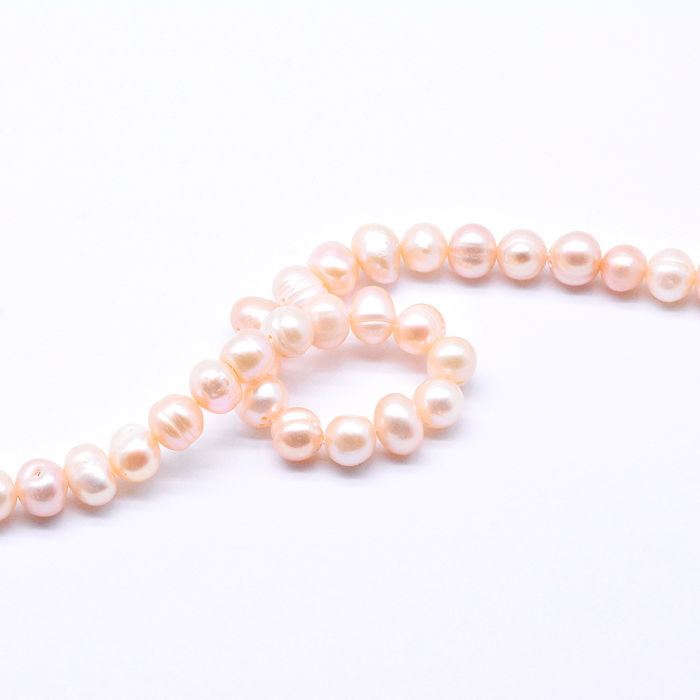 高品質淡水パールビーズ オーバル 天然素材 ベージュ 8-9mm【1連(約47ヶ)】