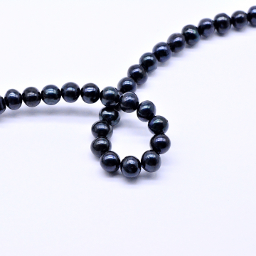 高品質淡水パールビーズ 丸玉 天然素材 ブラック 6-7mm【1連(約56ヶ)】