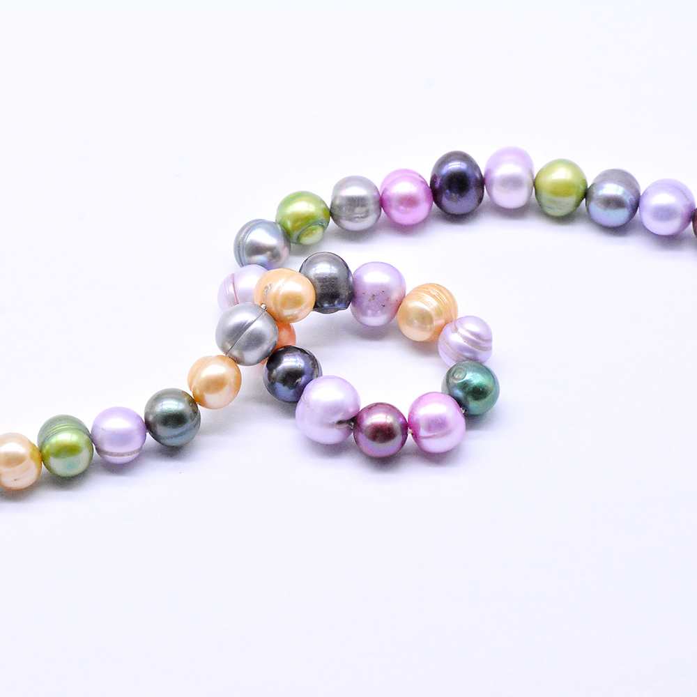 高品質淡水パールビーズ ラウンド 天然素材 カラーミックス 8-9mm【1連(約52ヶ)】