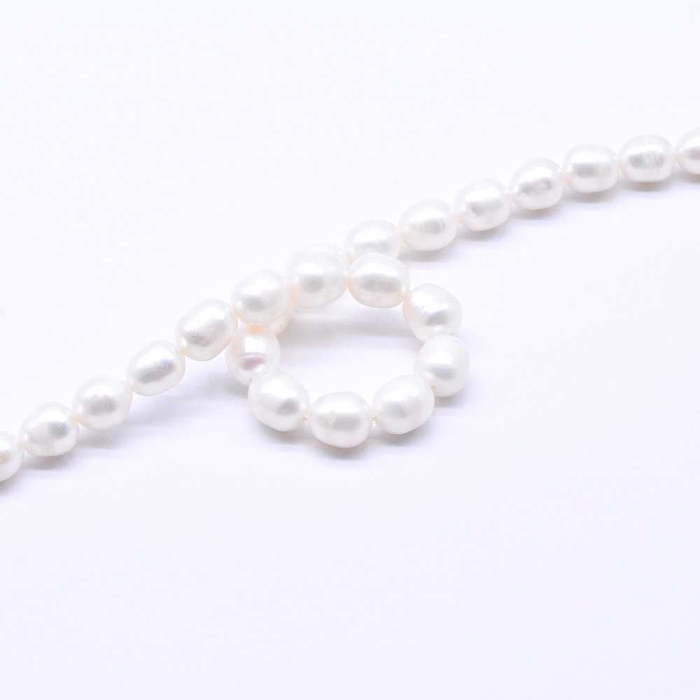 高品質淡水パールビーズ オーバル 天然素材 ホワイト 8-9mm【1連(約41ヶ)】