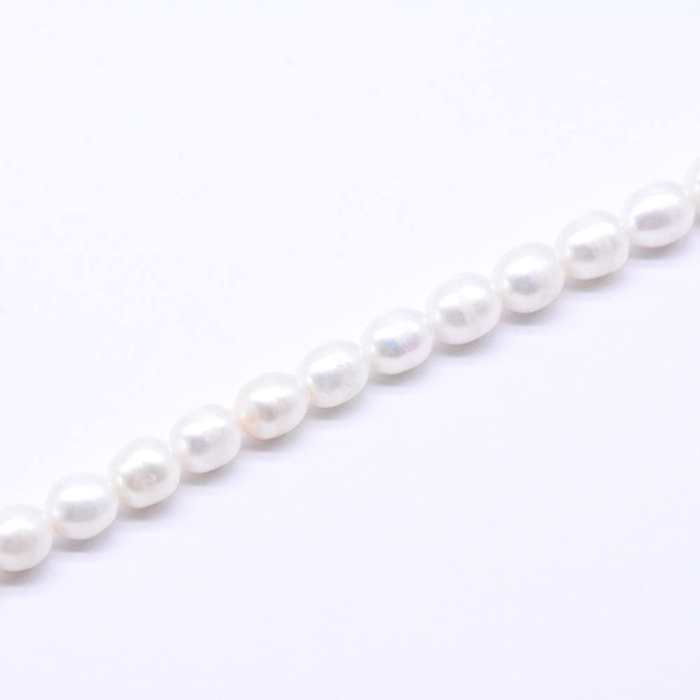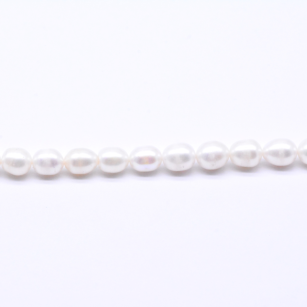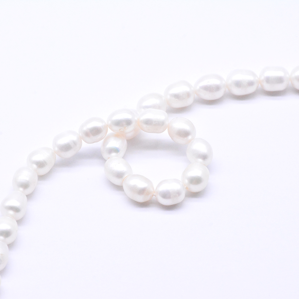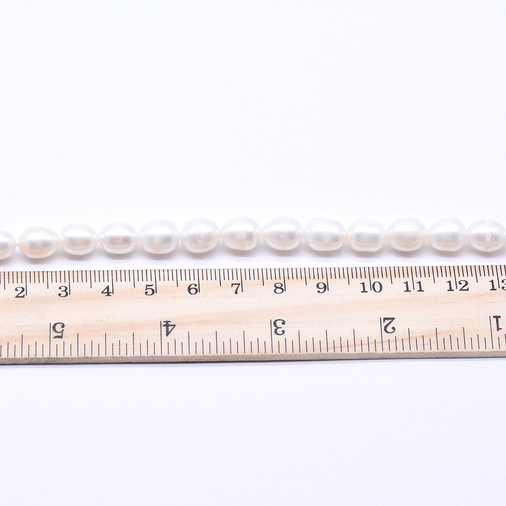 高品質淡水パールビーズ オーバル 天然素材 ホワイト 8-9mm【1連(約40ヶ)】