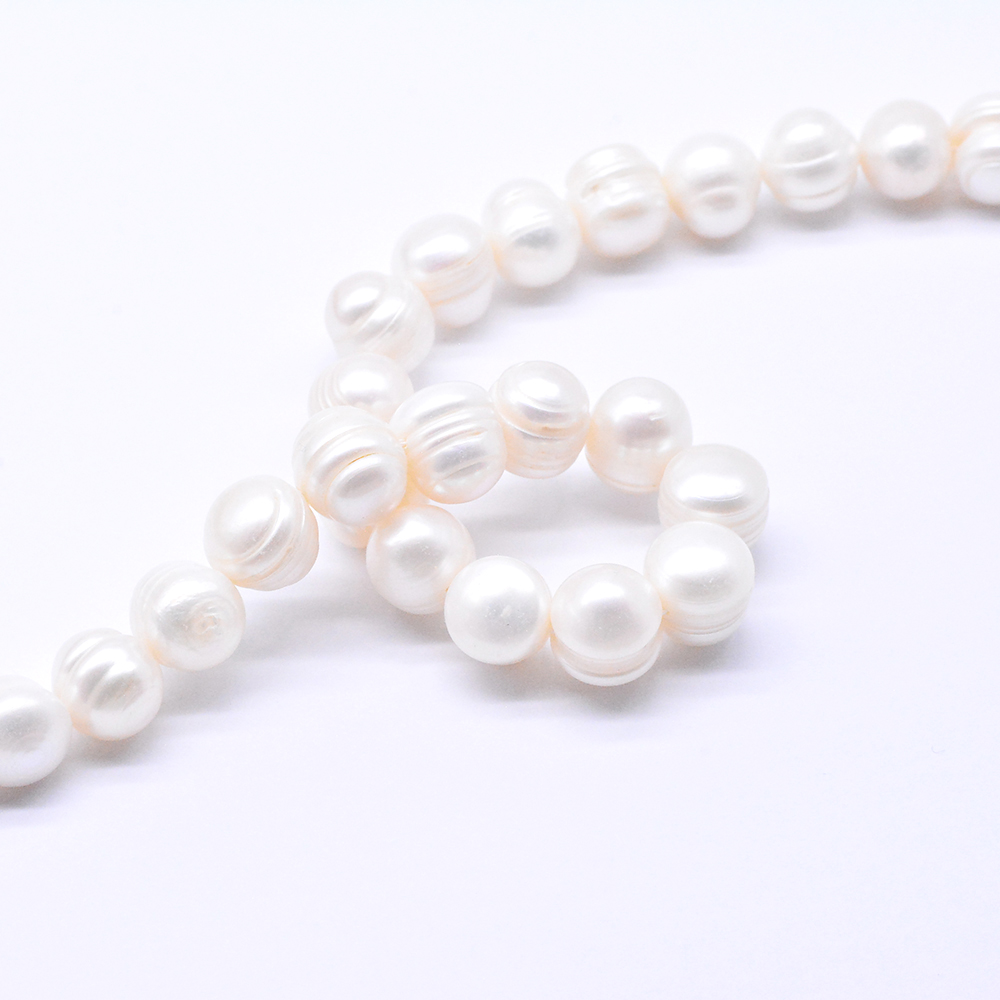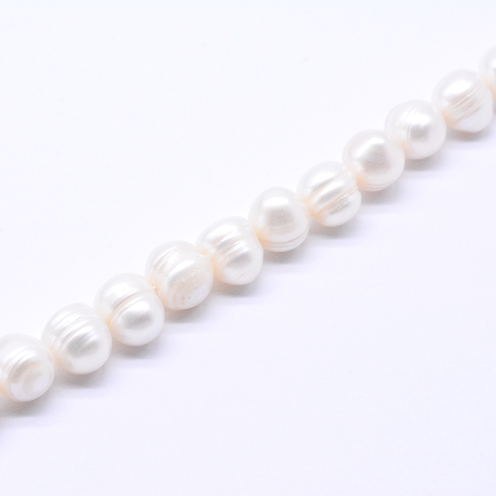 高品質淡水パールビーズ オーバル 天然素材 ホワイト 11-12mm【1連(約35ヶ)】