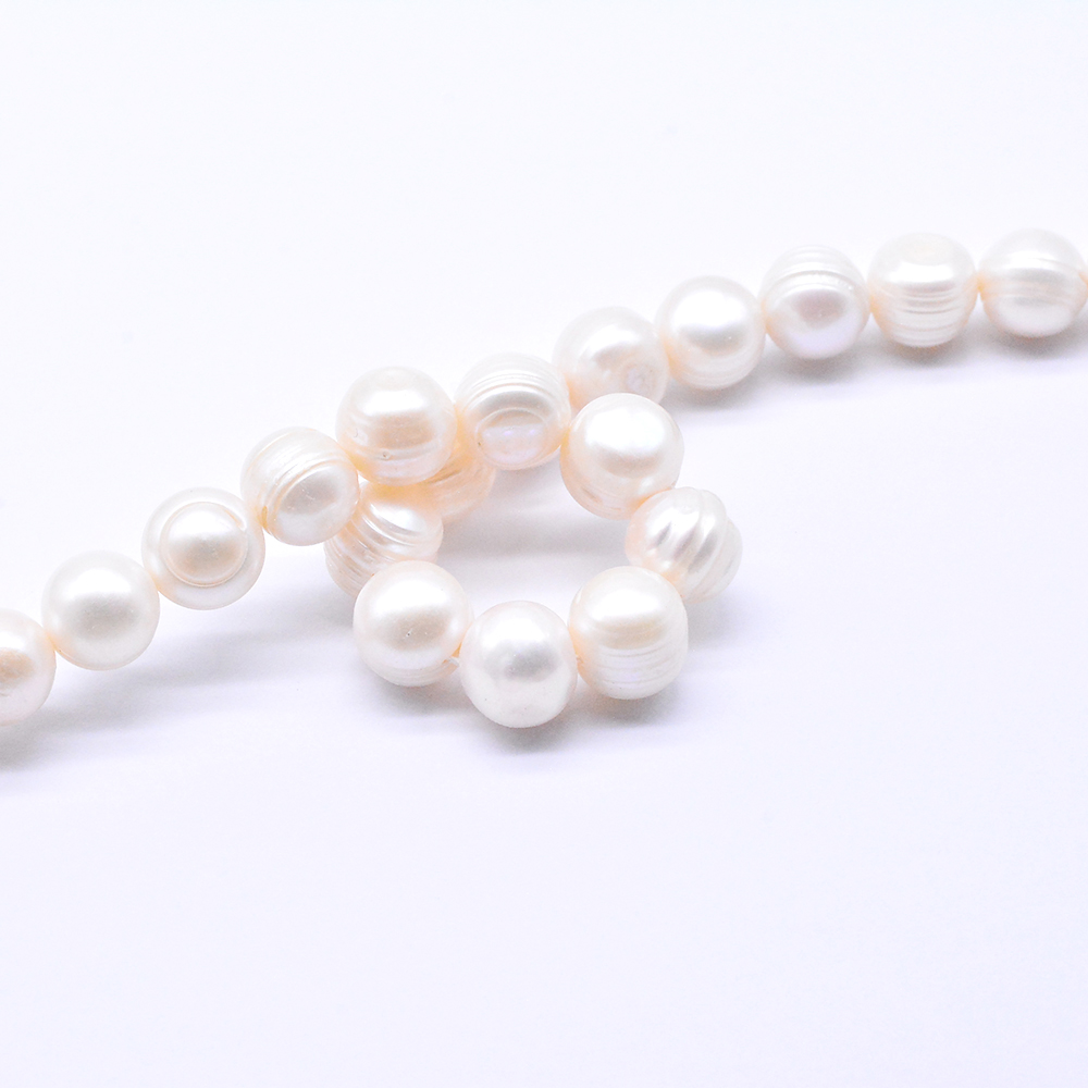 高品質淡水パールビーズ ラウンド 天然素材 ホワイト 11-12mm【1連(約35ヶ)】