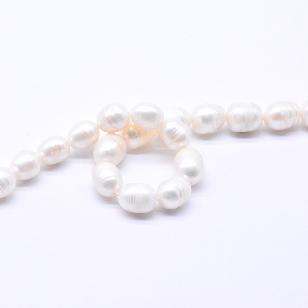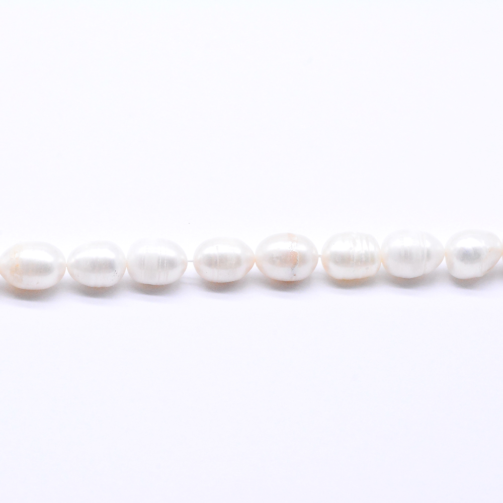 高品質淡水パールビーズ オーバル 天然素材 ホワイト 10-11mm【1連(約30ヶ)】