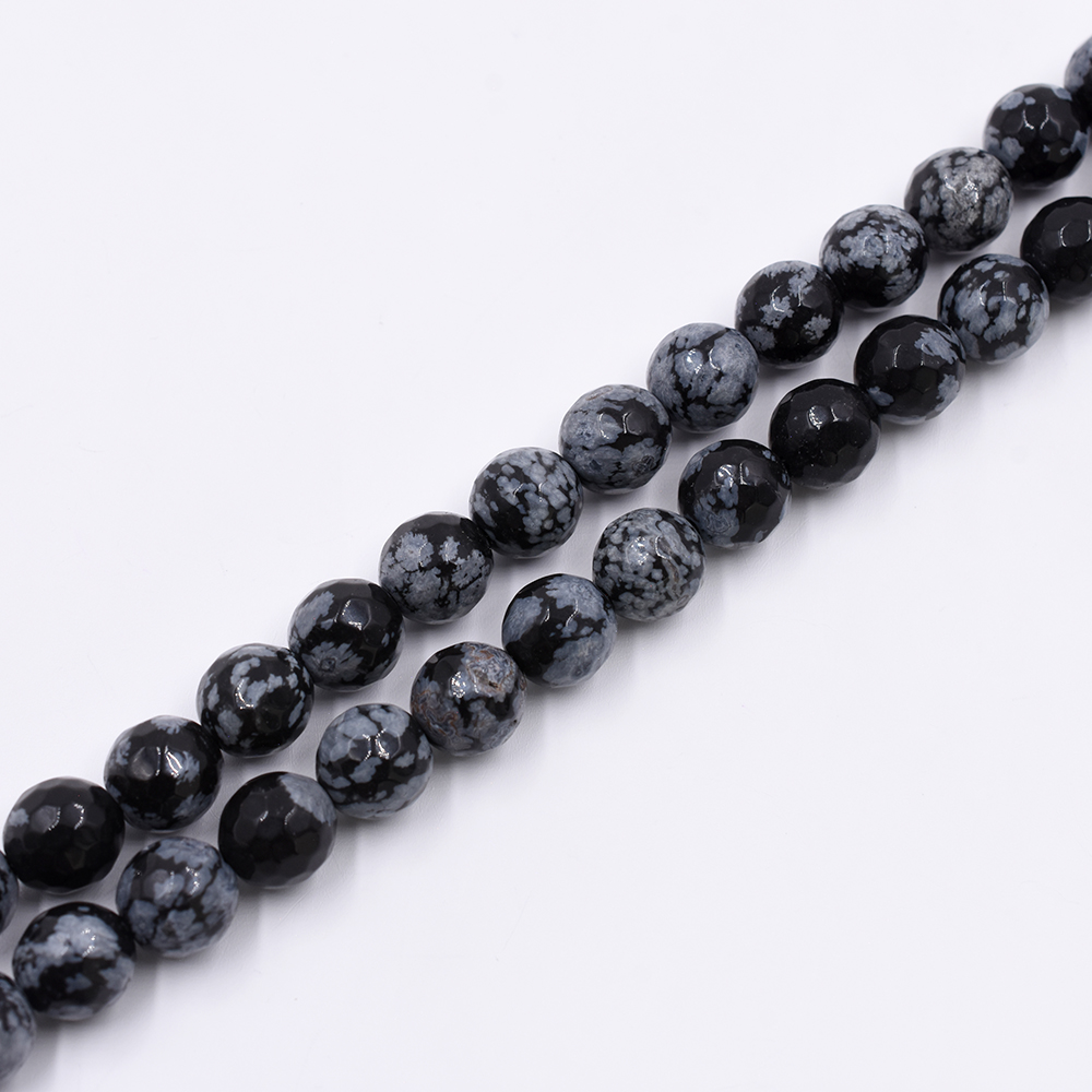 天然石ビーズ ラウンドカット スノーフレークオブシディアン 6mm 1連(約60ケ)
