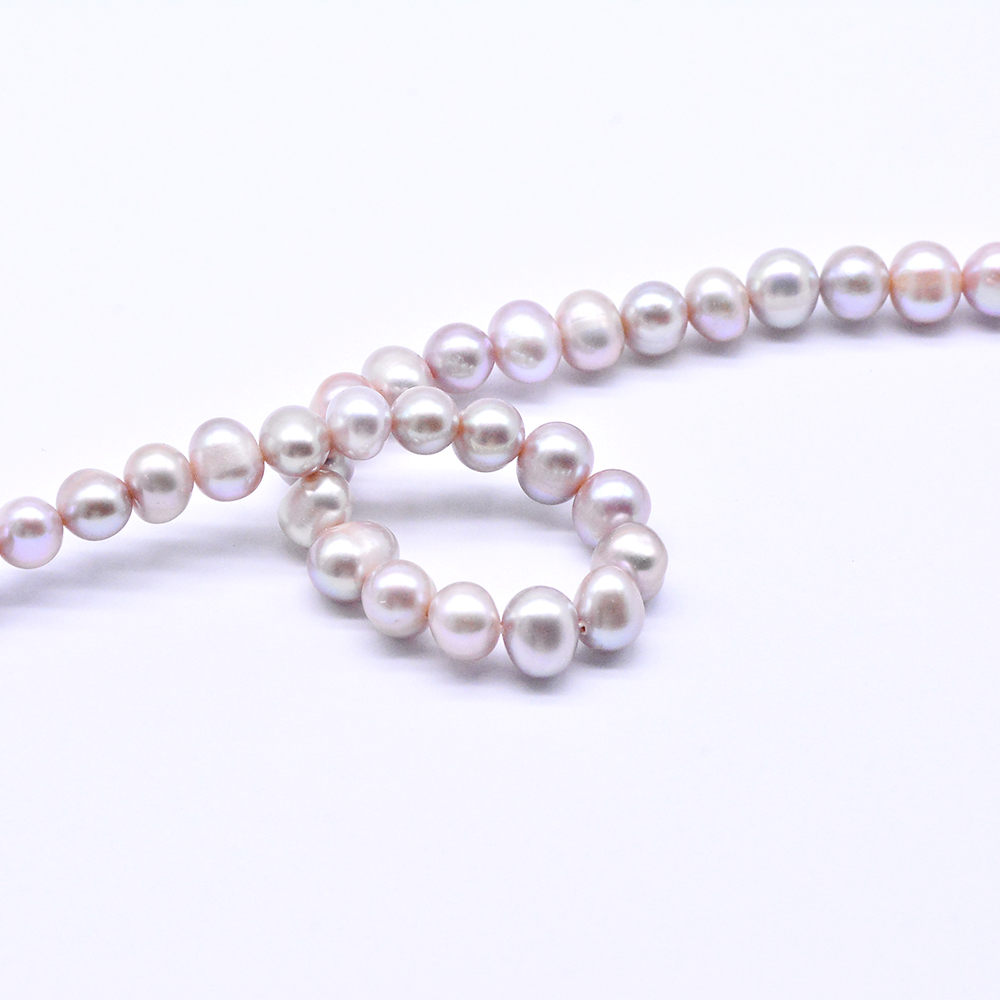高品質淡水パールビーズ ラウンド 天然素材 ライトパープル 7-8mm【1連(約56ヶ)】