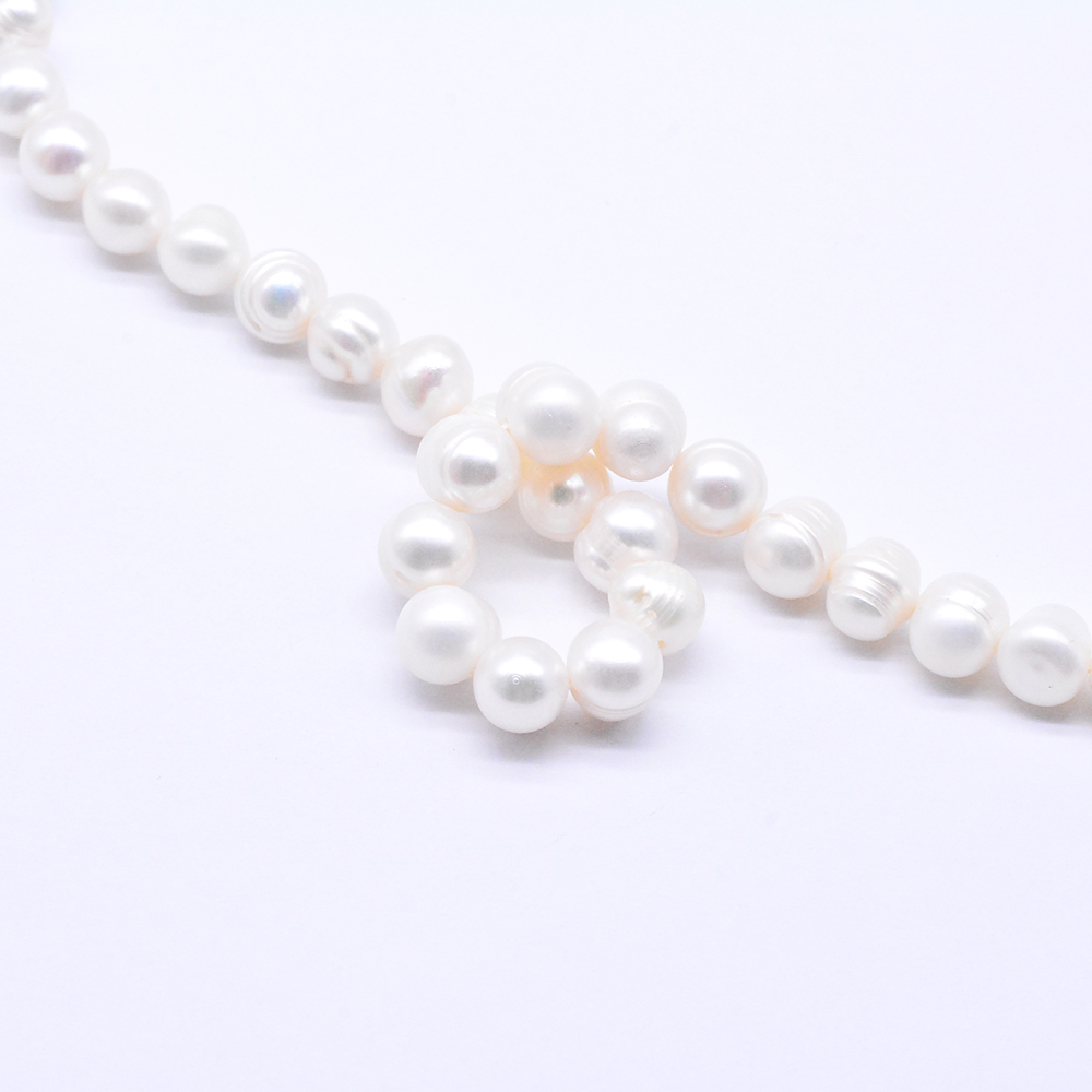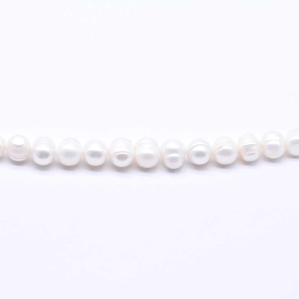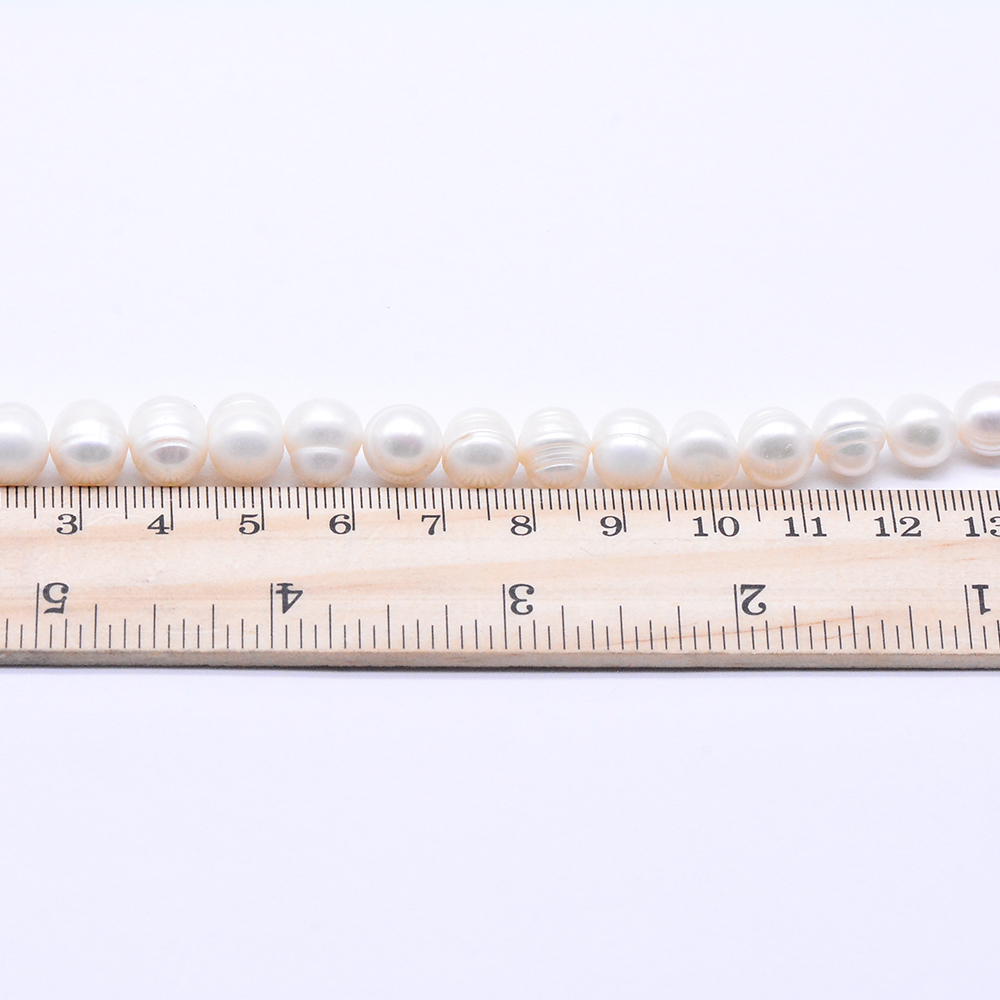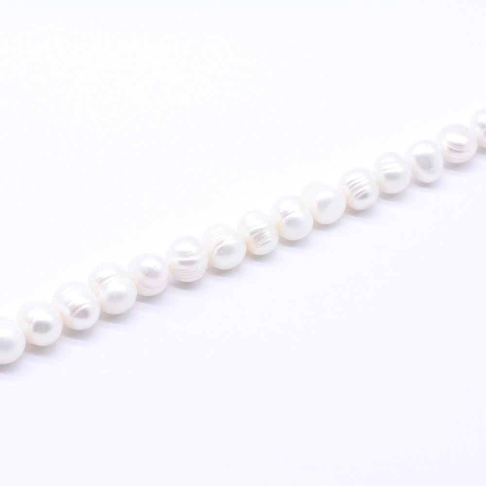 高品質淡水パールビーズ オーバル 天然素材 ホワイト9-10mm【1連(約42ヶ)】