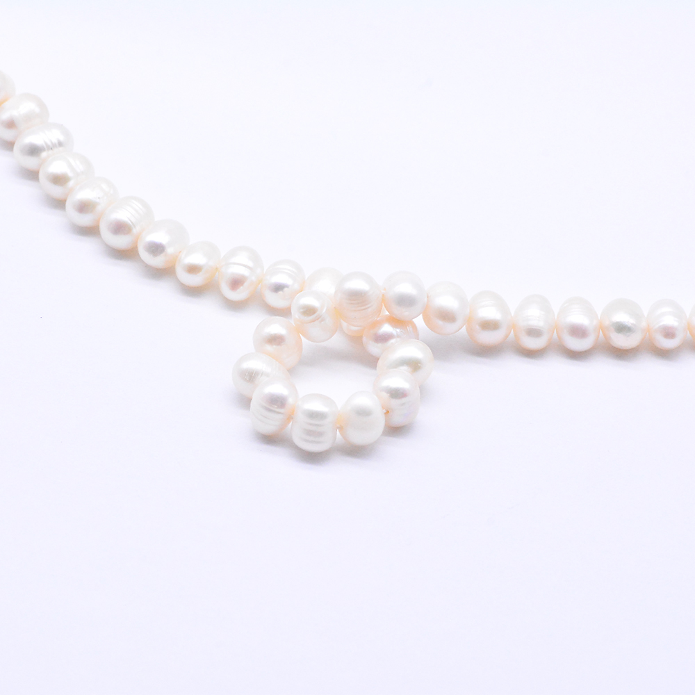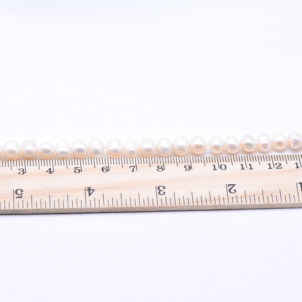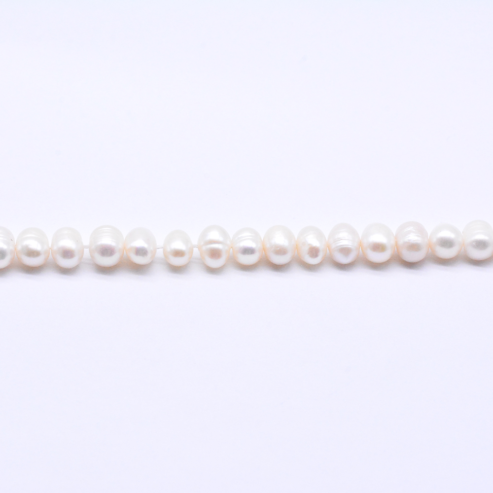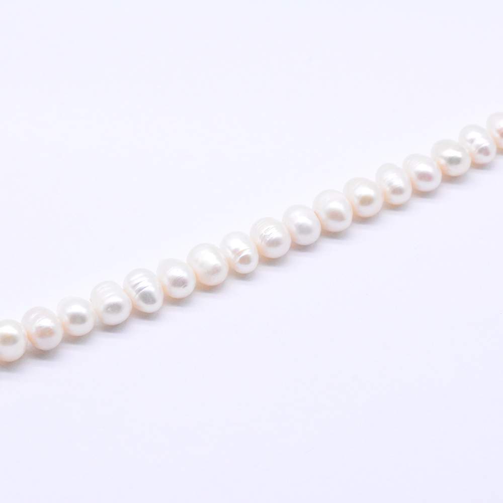 高品質淡水パールビーズ オーバル 天然素材 ホワイト 6-7mm【1連(約57ヶ)】