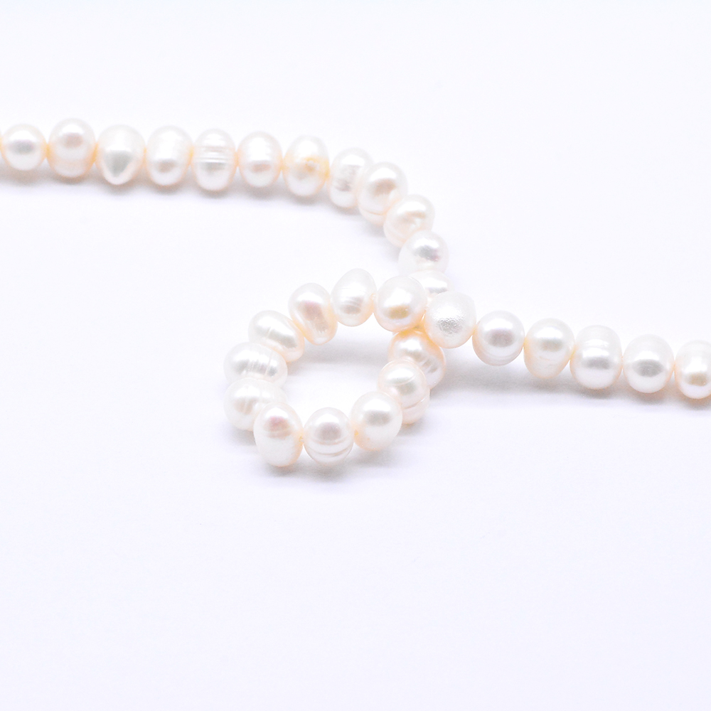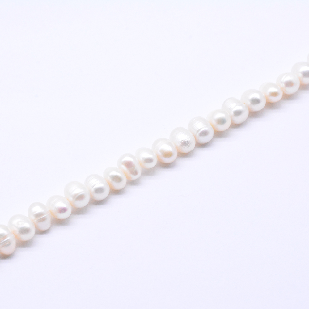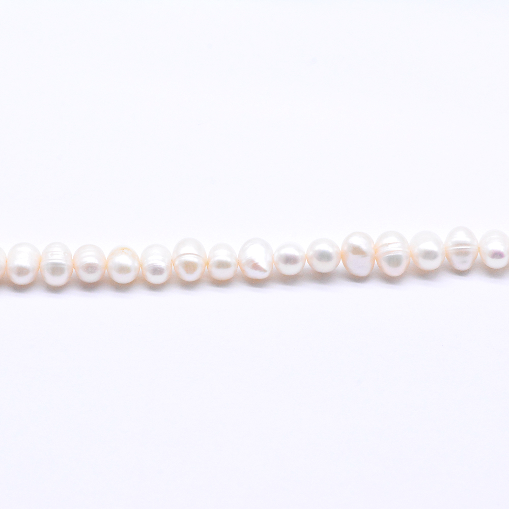 高品質淡水パールビーズ オーバル 天然素材 ホワイト 6-7mm【1連(約56ヶ)】