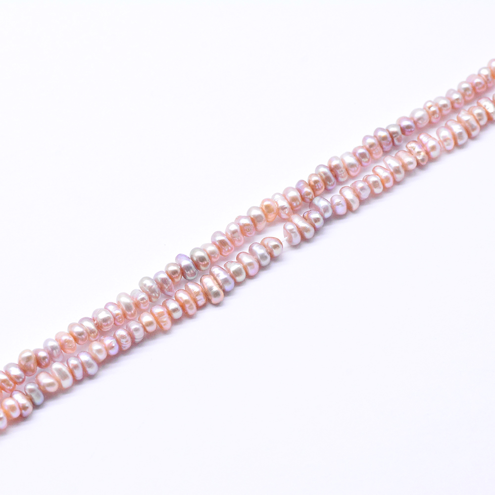 高品質淡水パールビーズ ボタン 天然素材 ライトピンク 3-5mm【1連(約157ヶ)】