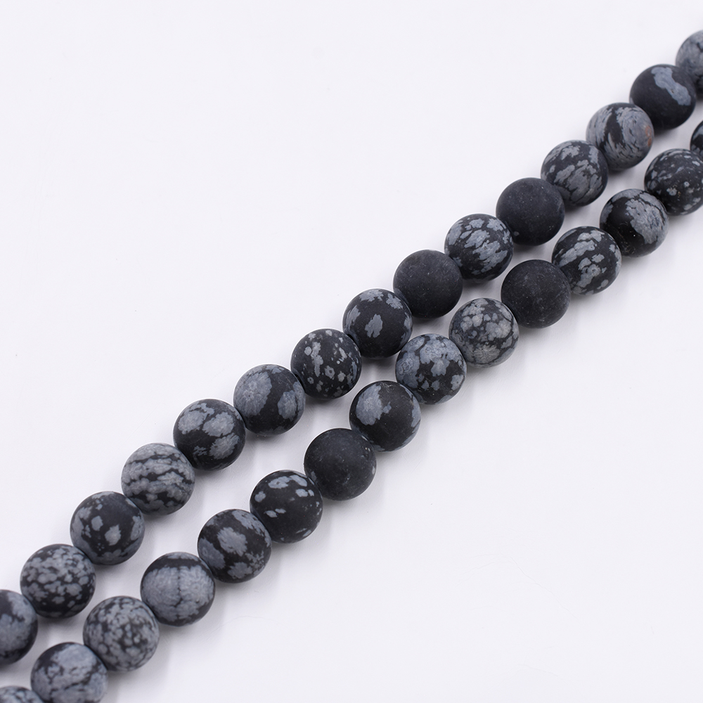 天然石ビーズ ラウンド スノーフレークオブシディアン 8mm 1連(約48ケ)