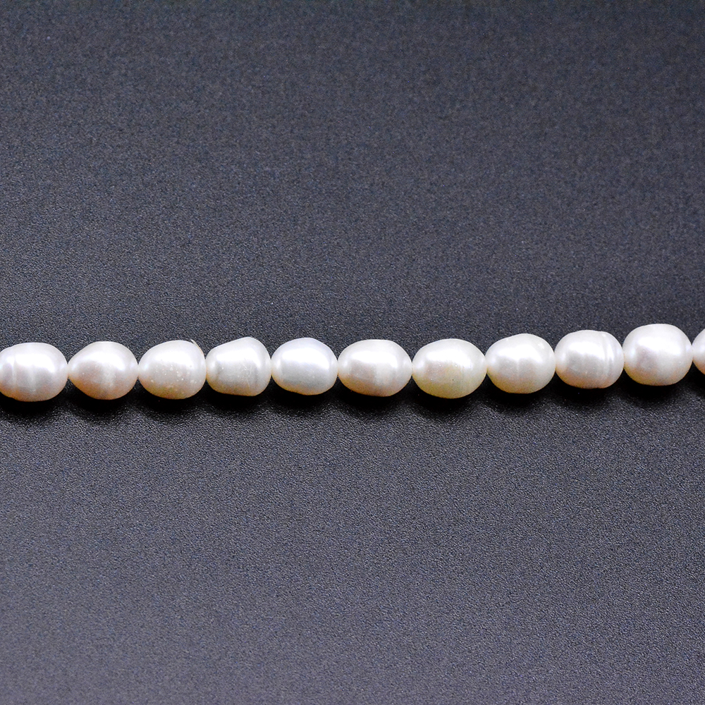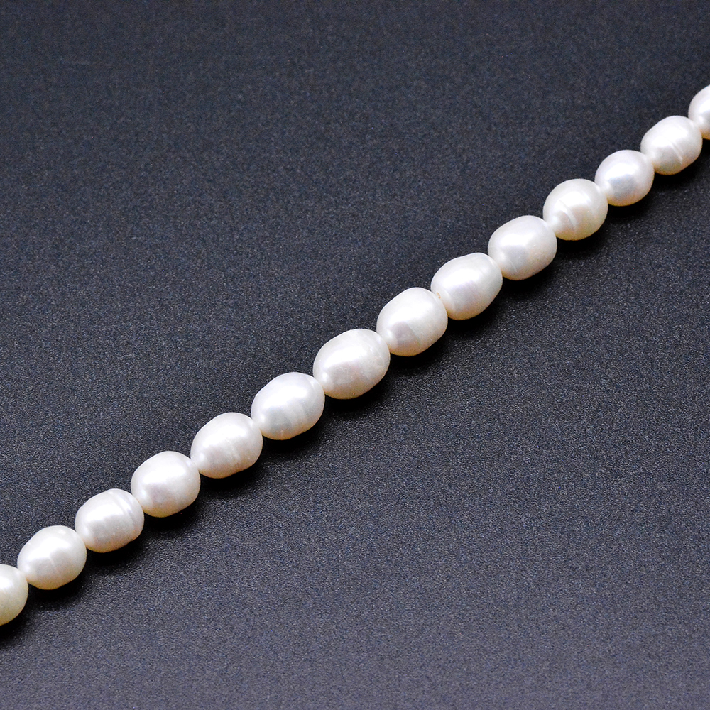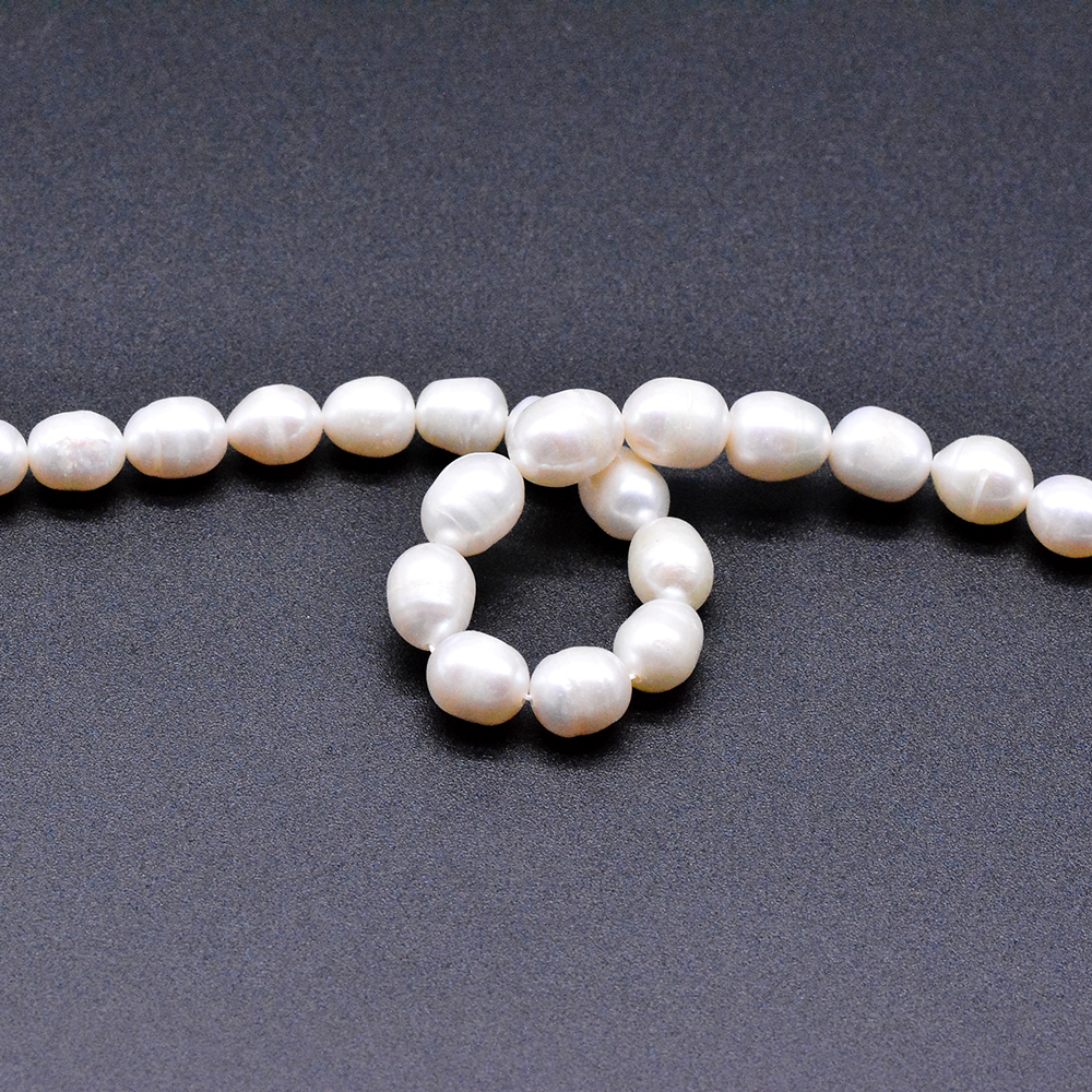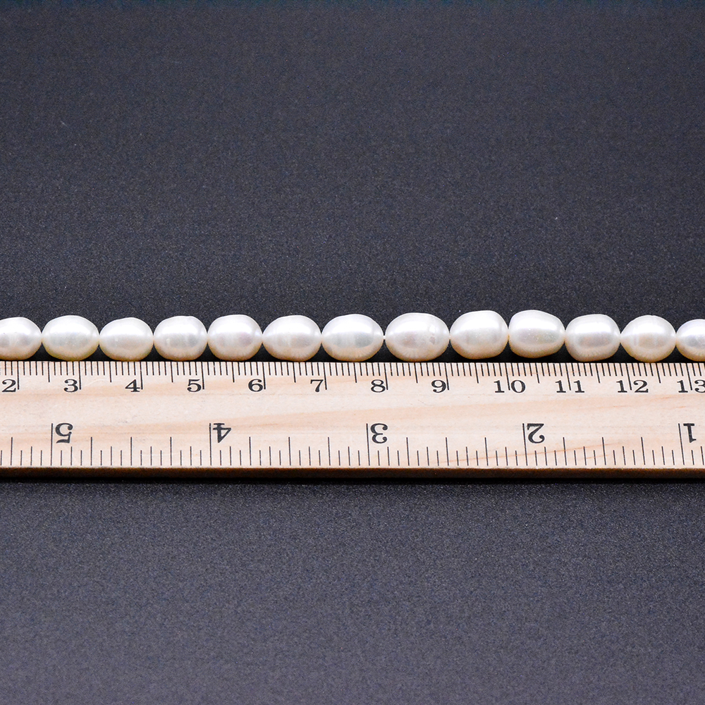 高品質淡水パールビーズ オーバル 天然素材 ホワイト 8-9mm【1連(約40ヶ)】