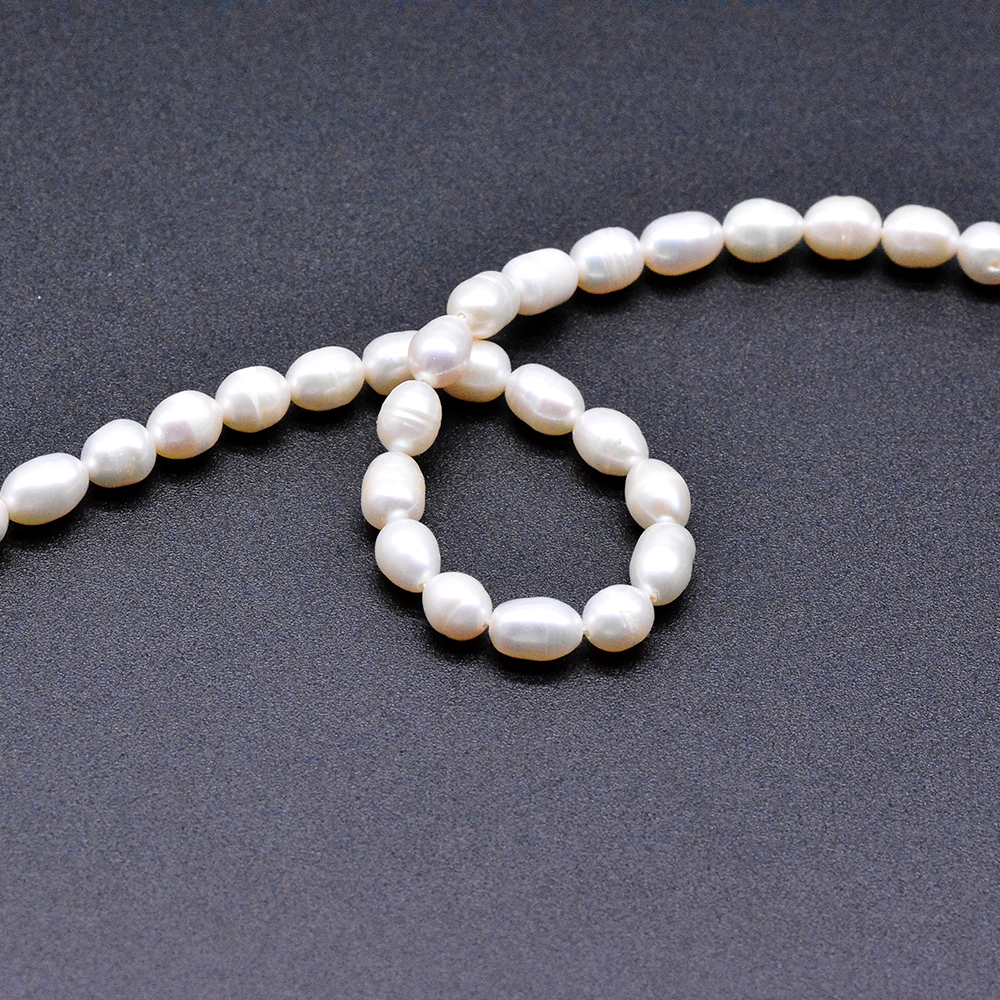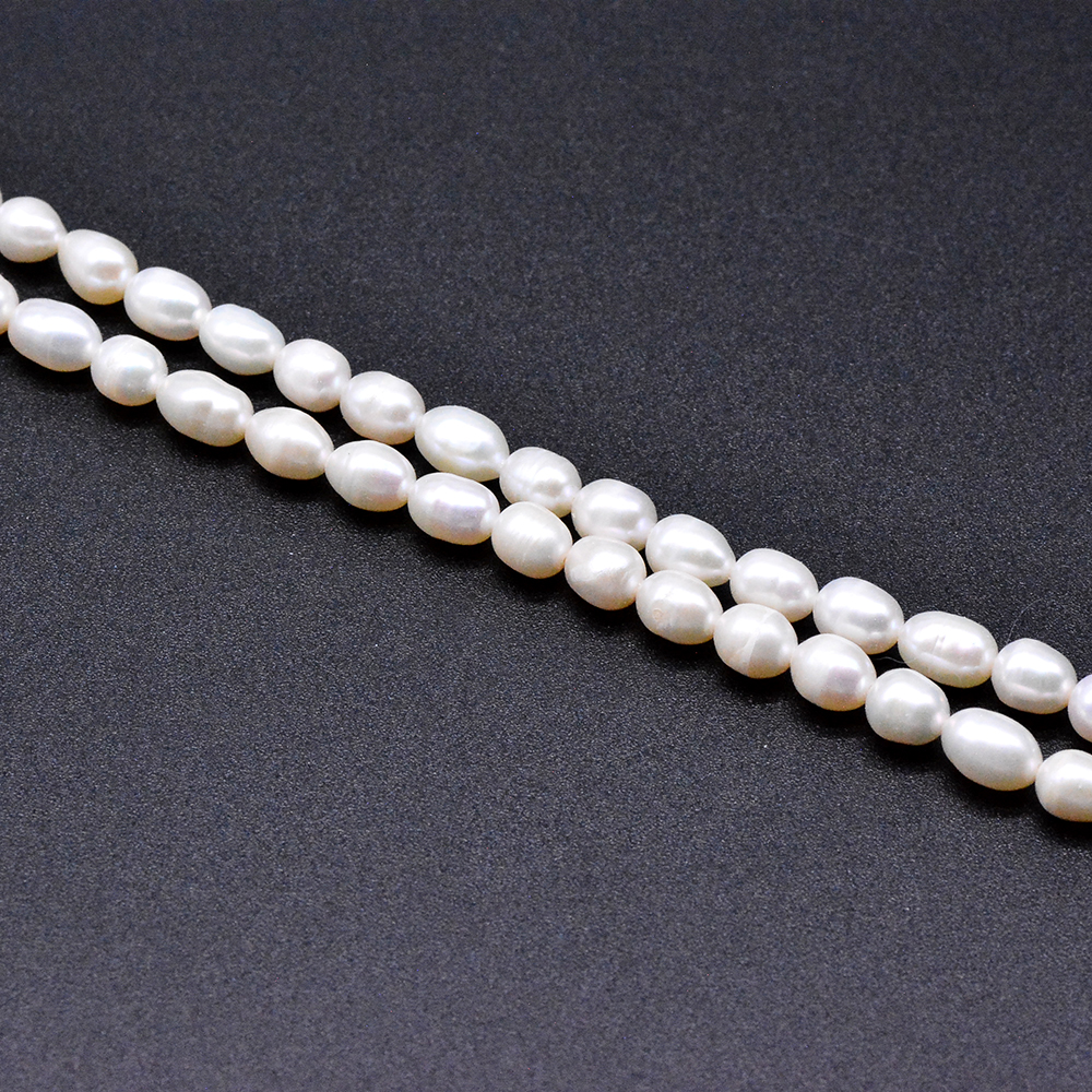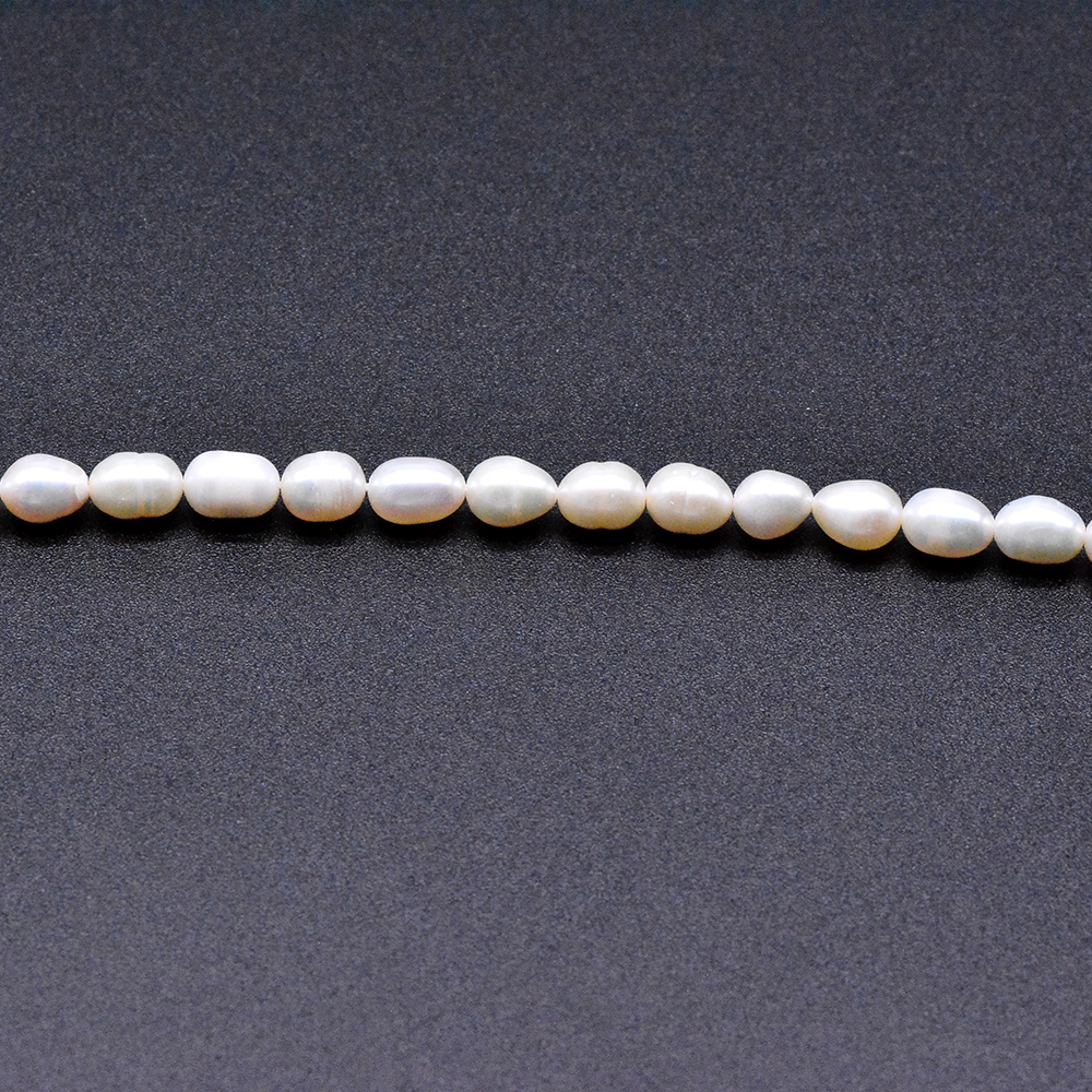 高品質淡水パールビーズ オーバル 天然素材 ホワイト 5.5mm【1連(約51ヶ)】