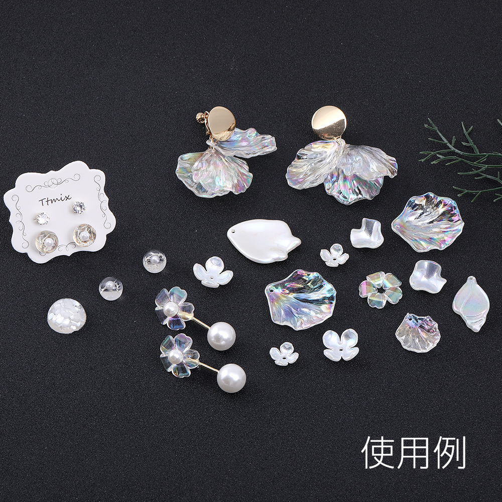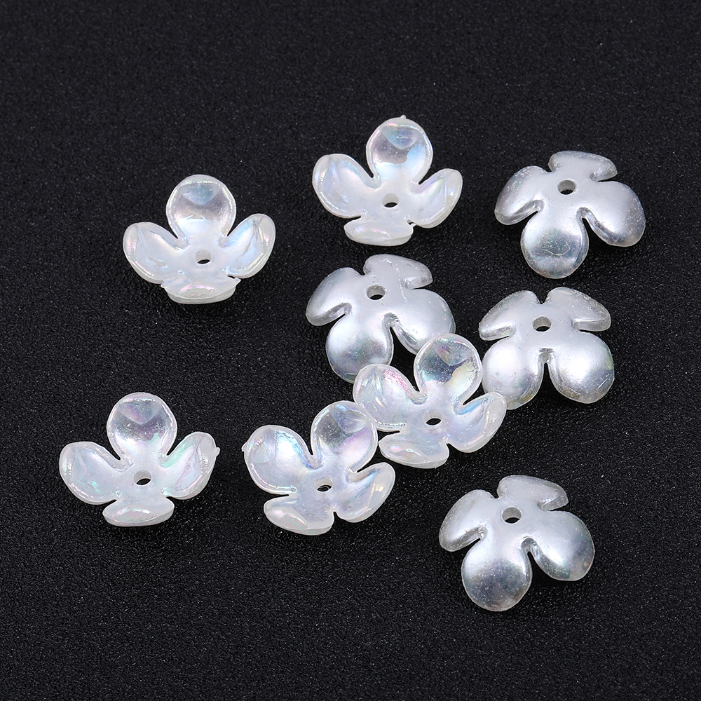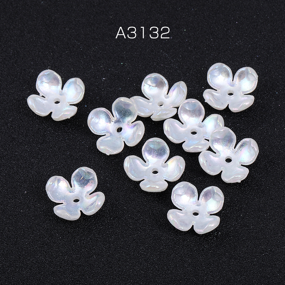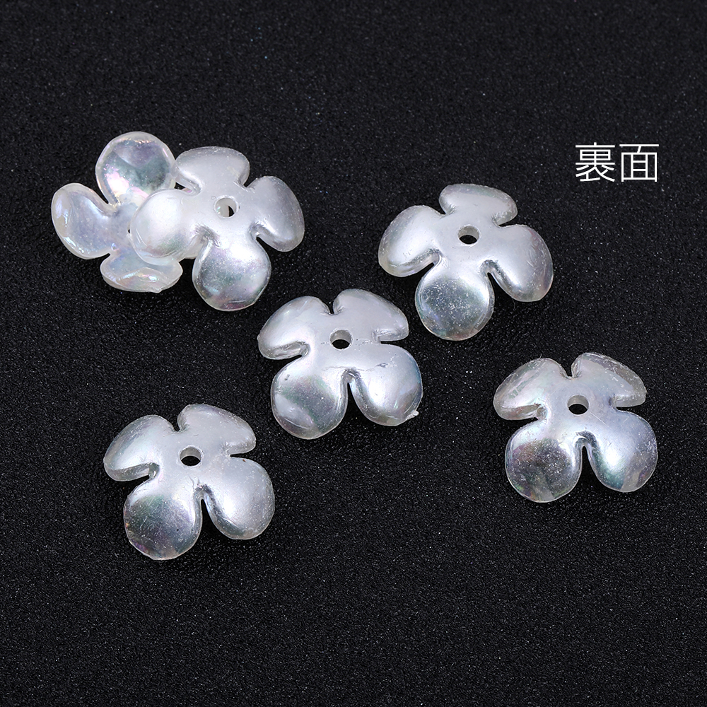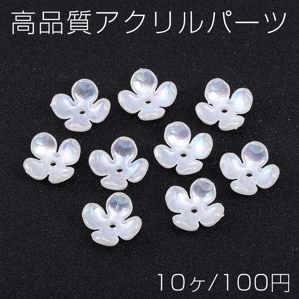 高品質アクリルパーツ アクリル花座 フラワー 四弁花 穴あり 14×14mm ホワイトABカラー(10ヶ)