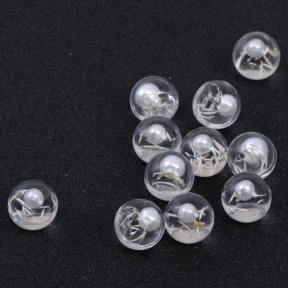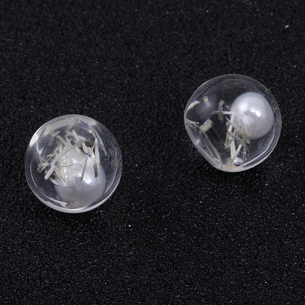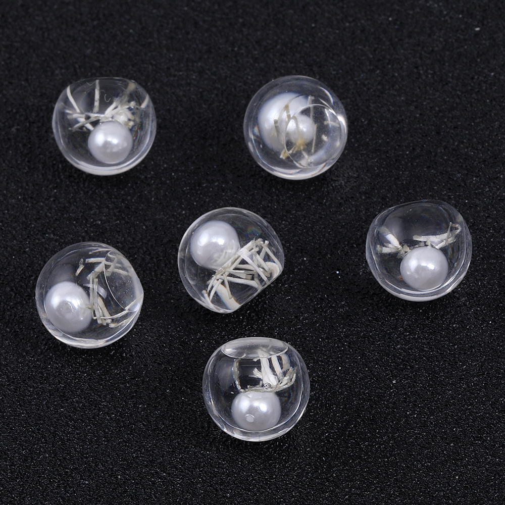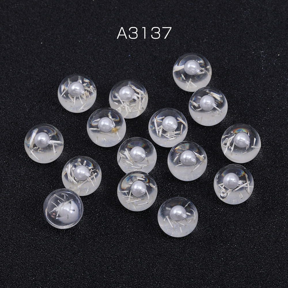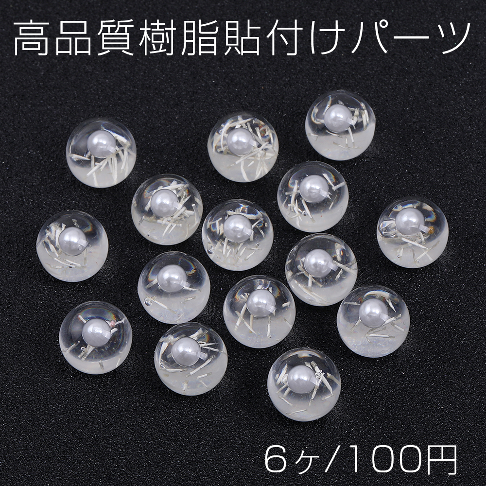 高品質樹脂貼付けパーツ 半球 10mm パール&ドライ草入り クリア(6ヶ)