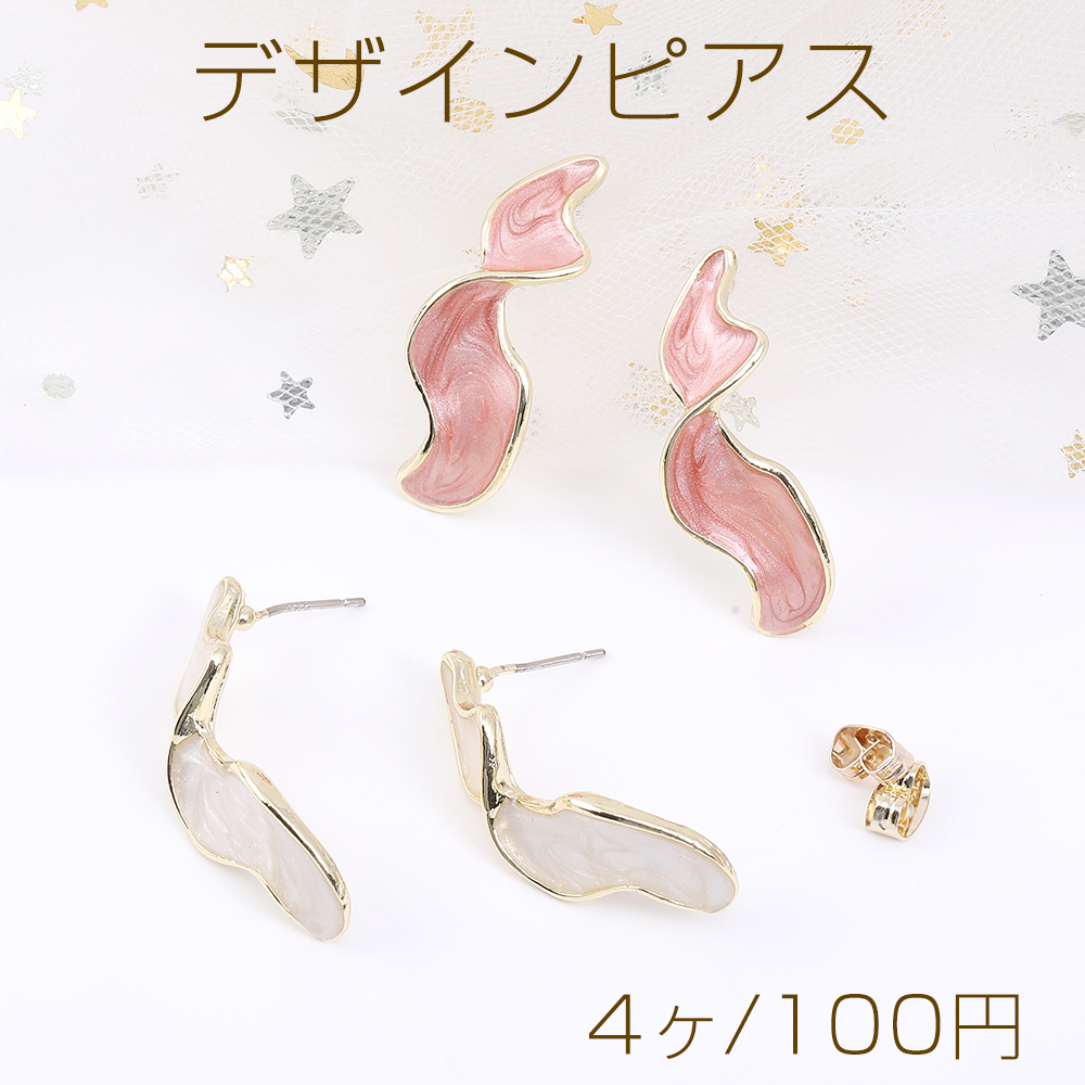 デザインピアス 不規則型 エポ付き 11×30mm ゴールド(4ヶ)