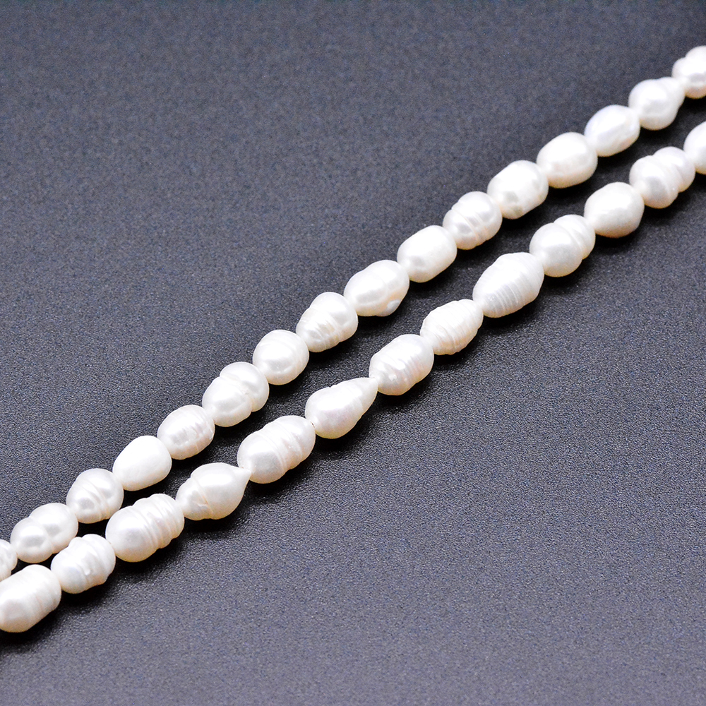高品質淡水パールビーズ 不規則 天然素材 ホワイト 6-7mm【1連(約42ヶ)】