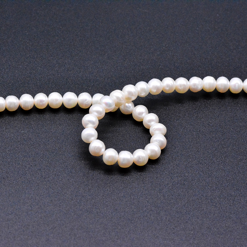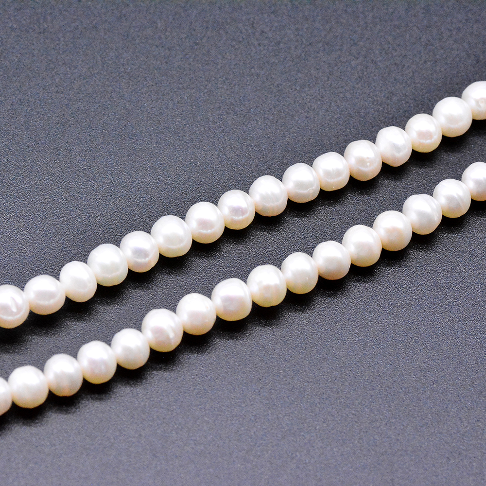高品質淡水パールビーズ 丸型 天然素材 ホワイト 6-7mm【1連(約68ヶ)】