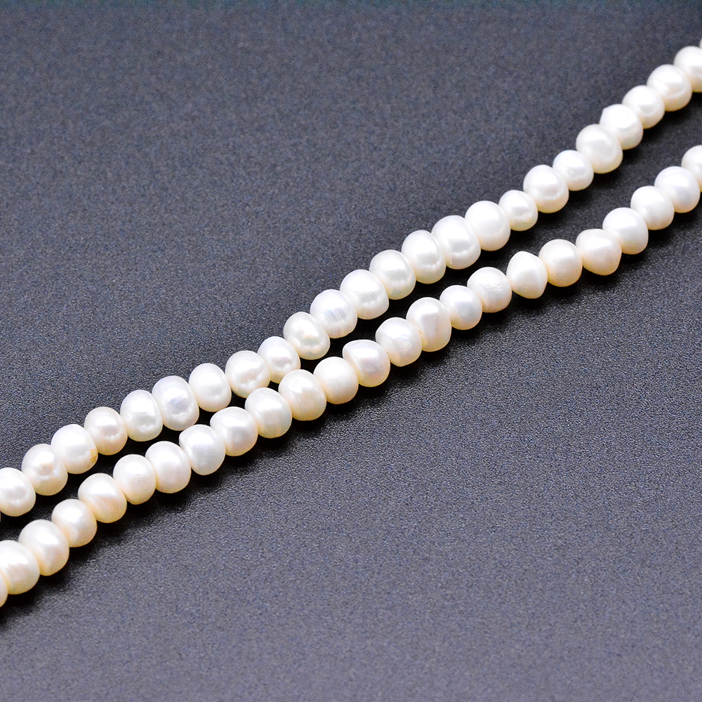 高品質淡水パールビーズ ボタン 天然素材 ホワイト 5.5mm【1連(約82ヶ)】