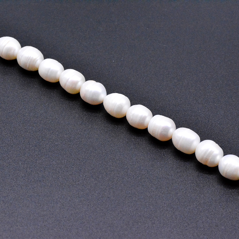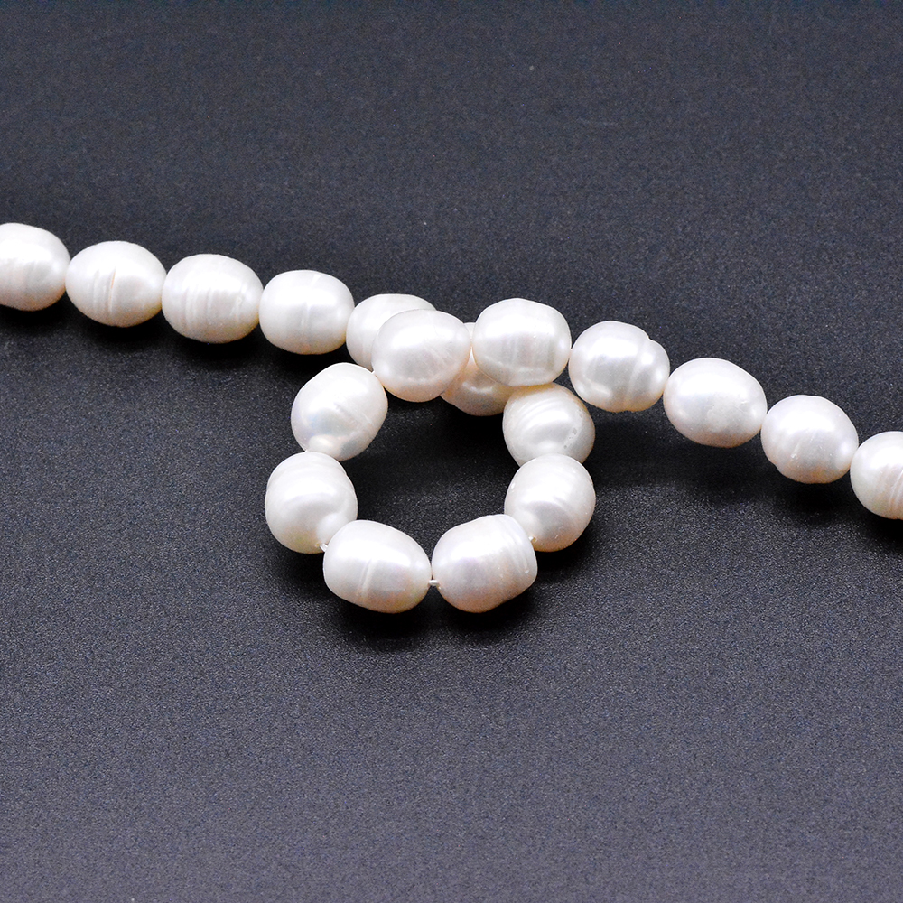 高品質淡水パールビーズ オーバル 天然素材 ホワイト 11-12mm【1連(約30ヶ)】