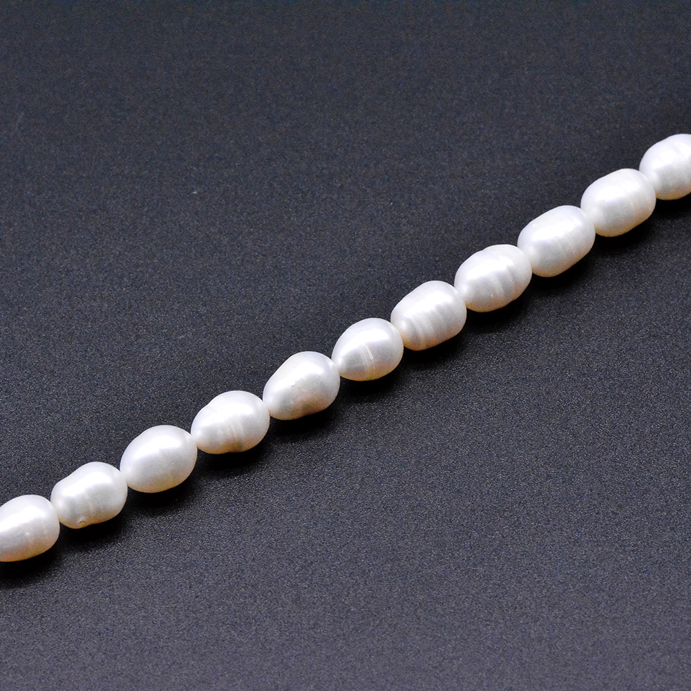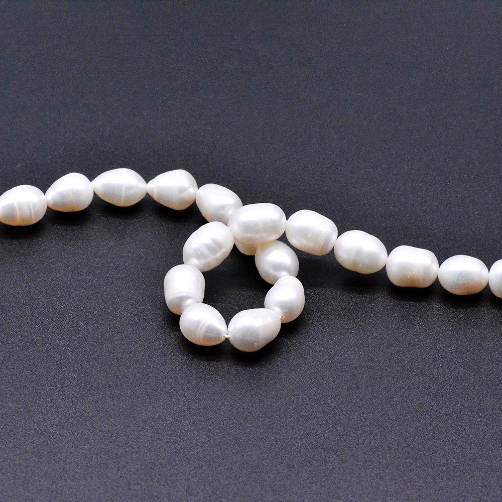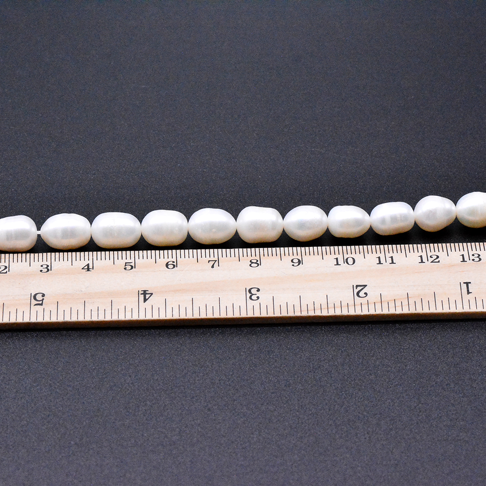 高品質淡水パールビーズ オーバル 天然素材 ホワイト 9-10mm【1連(約32ヶ)】