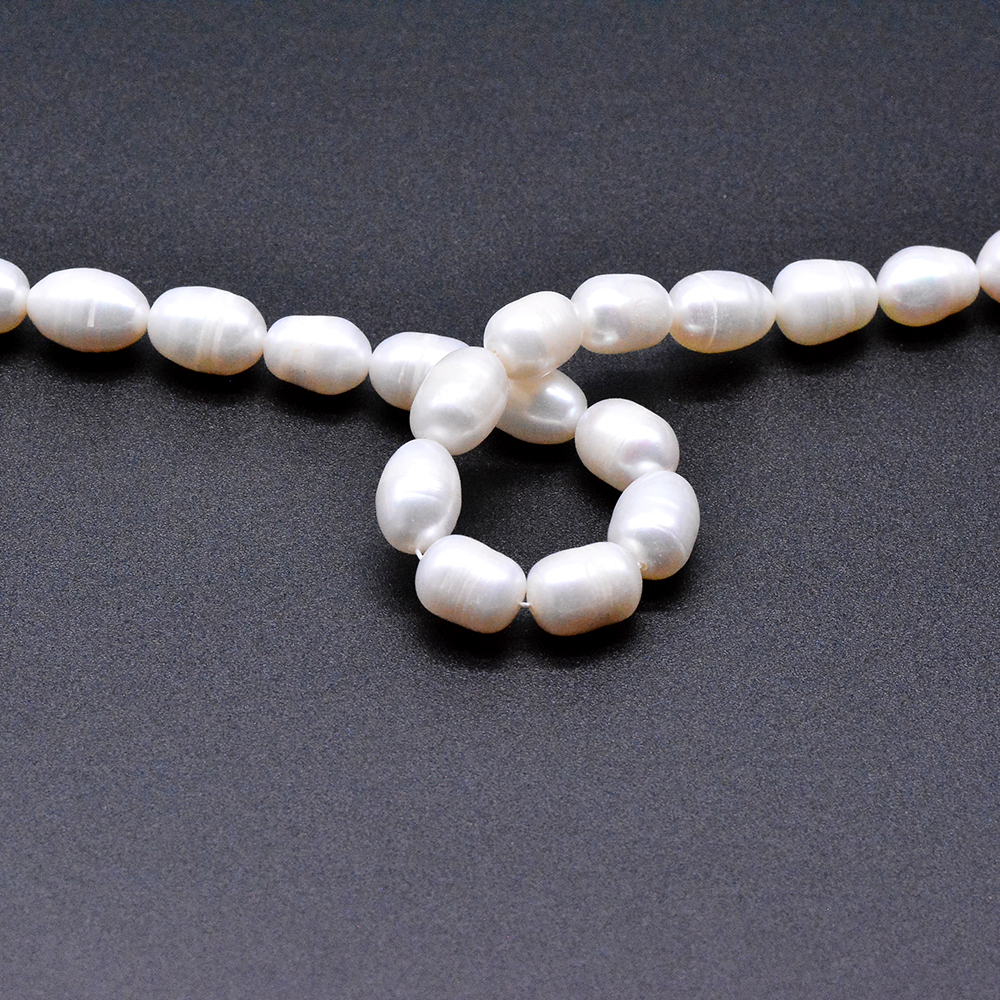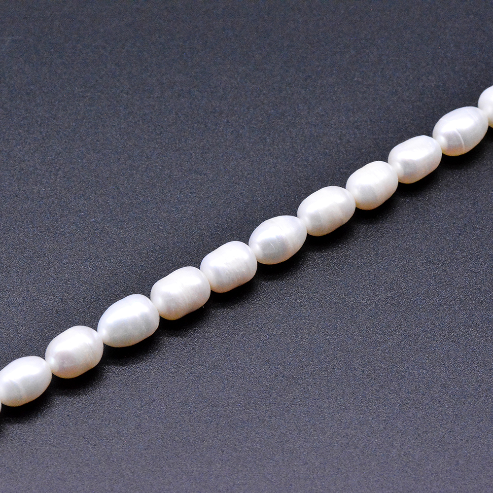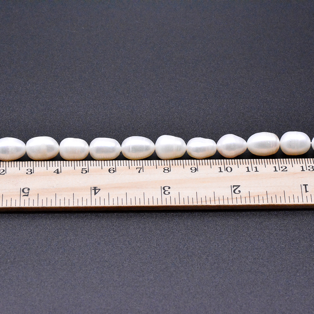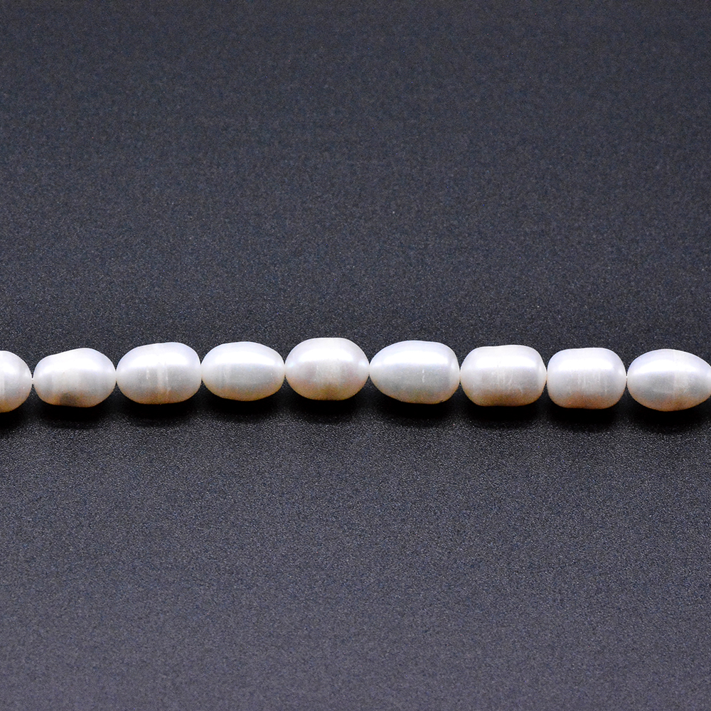高品質淡水パールビーズ オーバル 天然素材 ホワイト 9-10mm【1連(約30ヶ)】