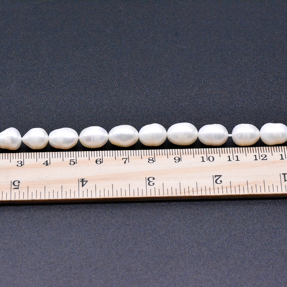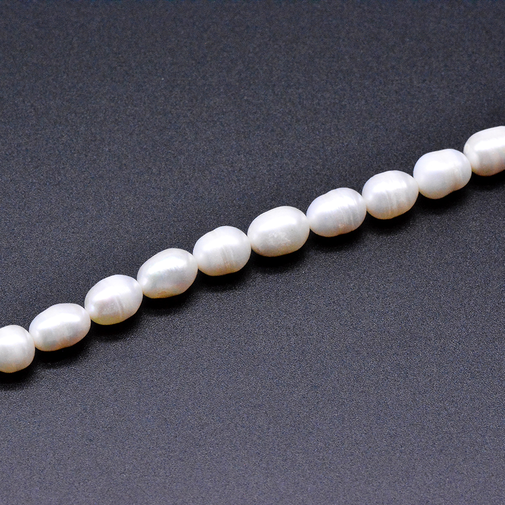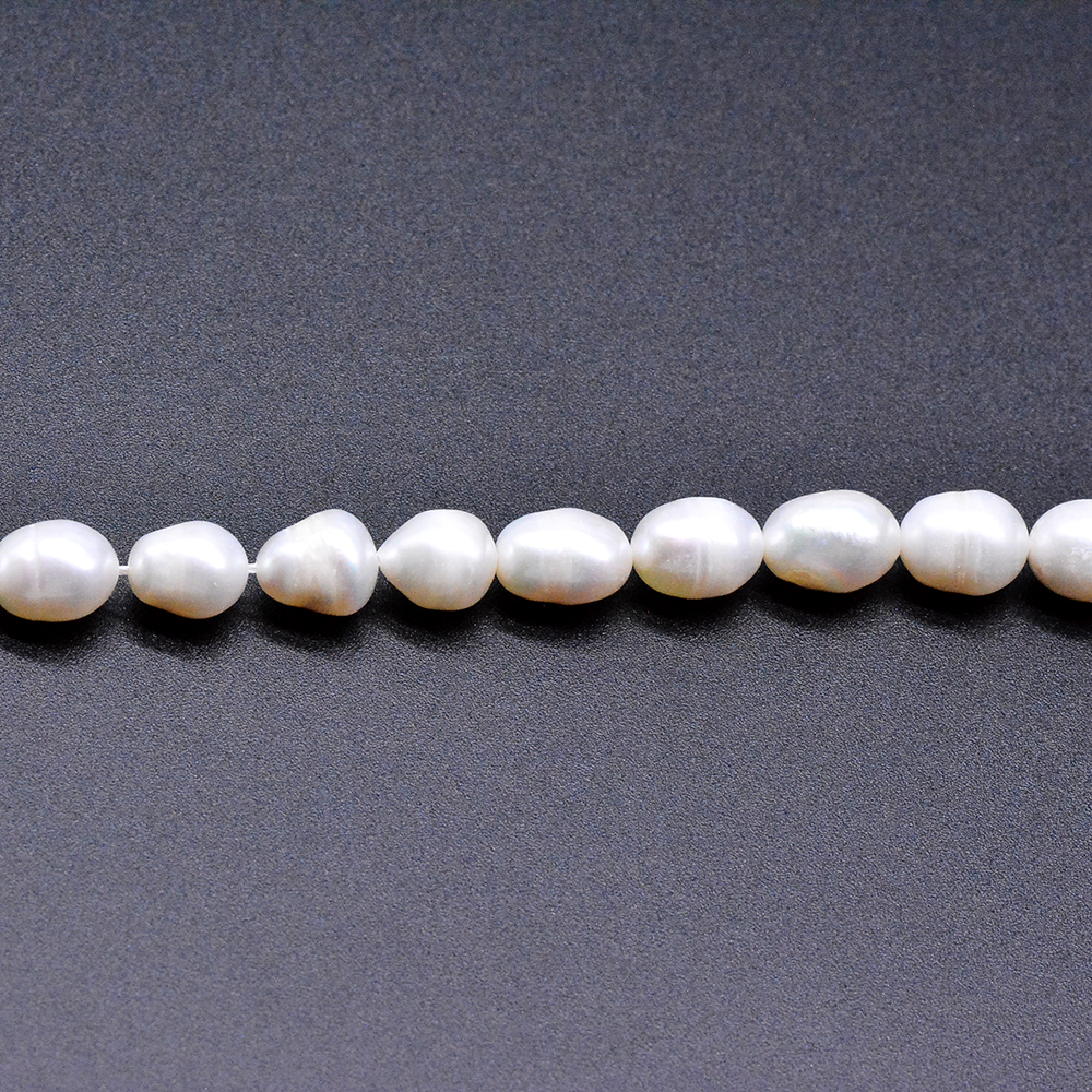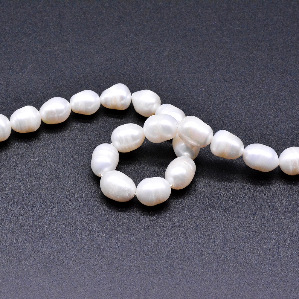 高品質淡水パールビーズ オーバル 天然素材 ホワイト 9-10mm【1連(約33ヶ)】