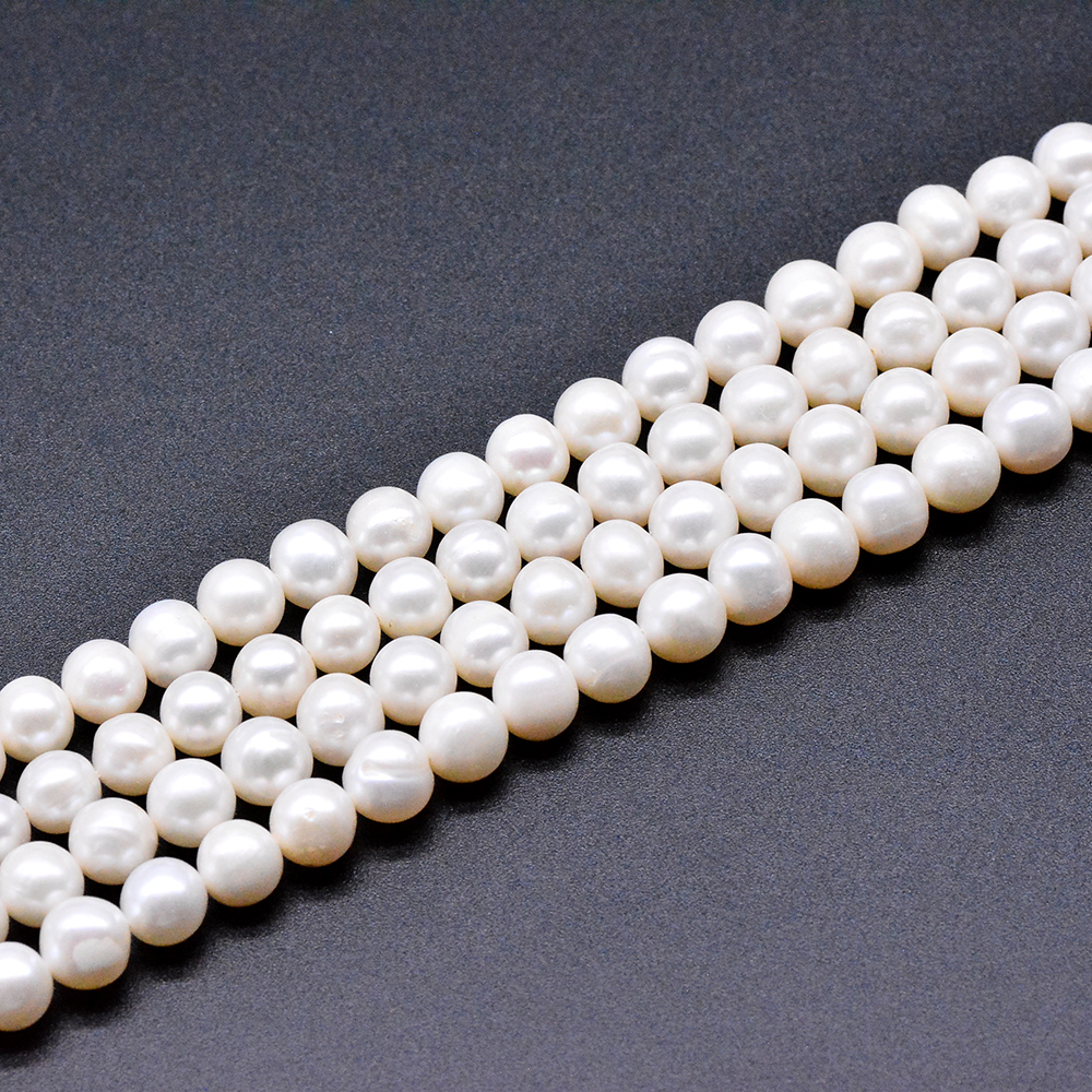 高品質淡水パールビーズ 丸型 天然素材 ホワイト8-9mm【1連(約49ヶ)】
