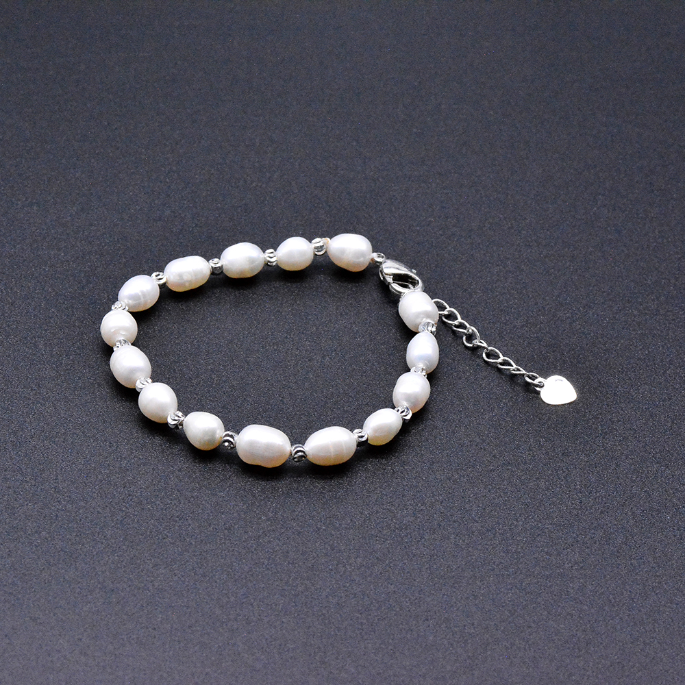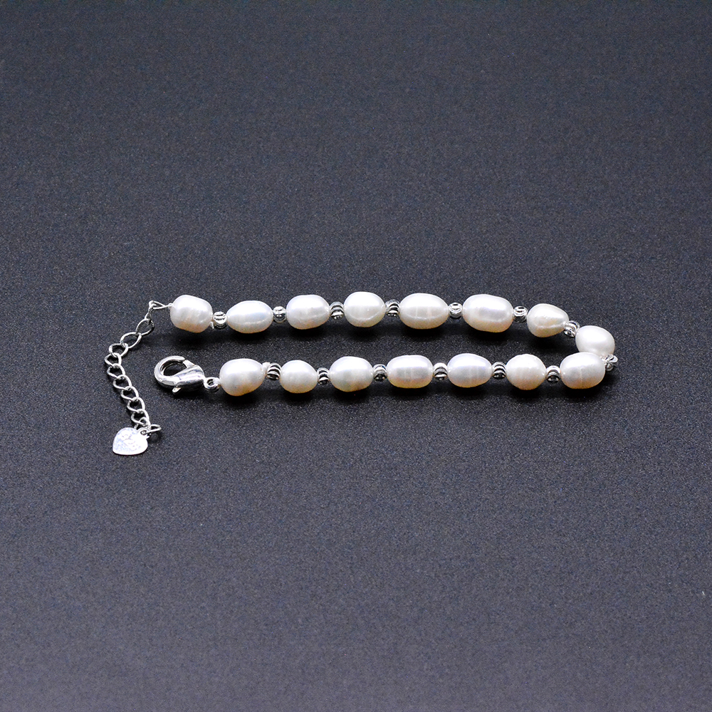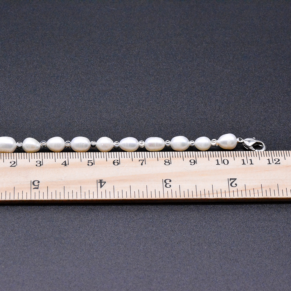 高品質淡水パールブレスレット オーバル ホワイト ロジウム 【1連】