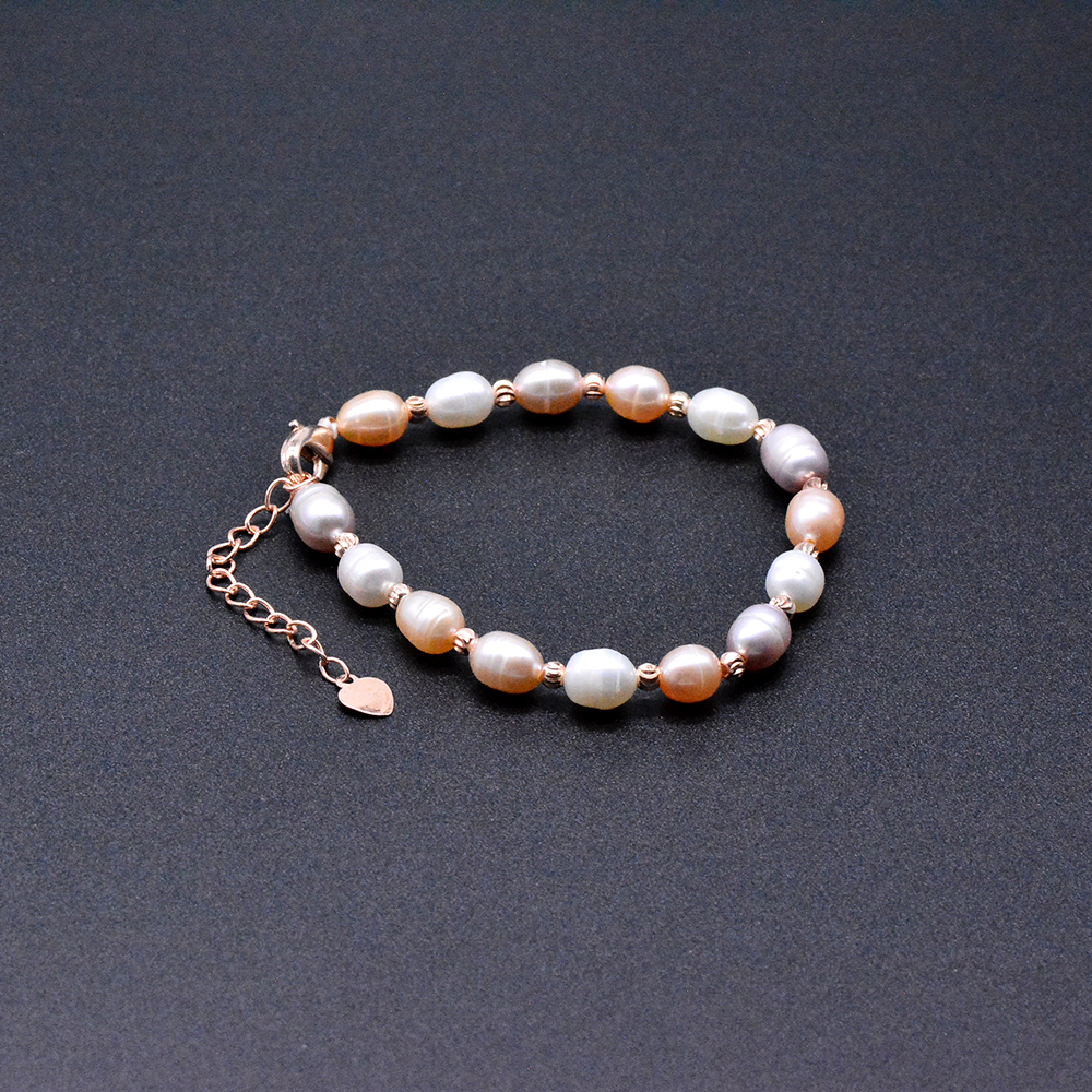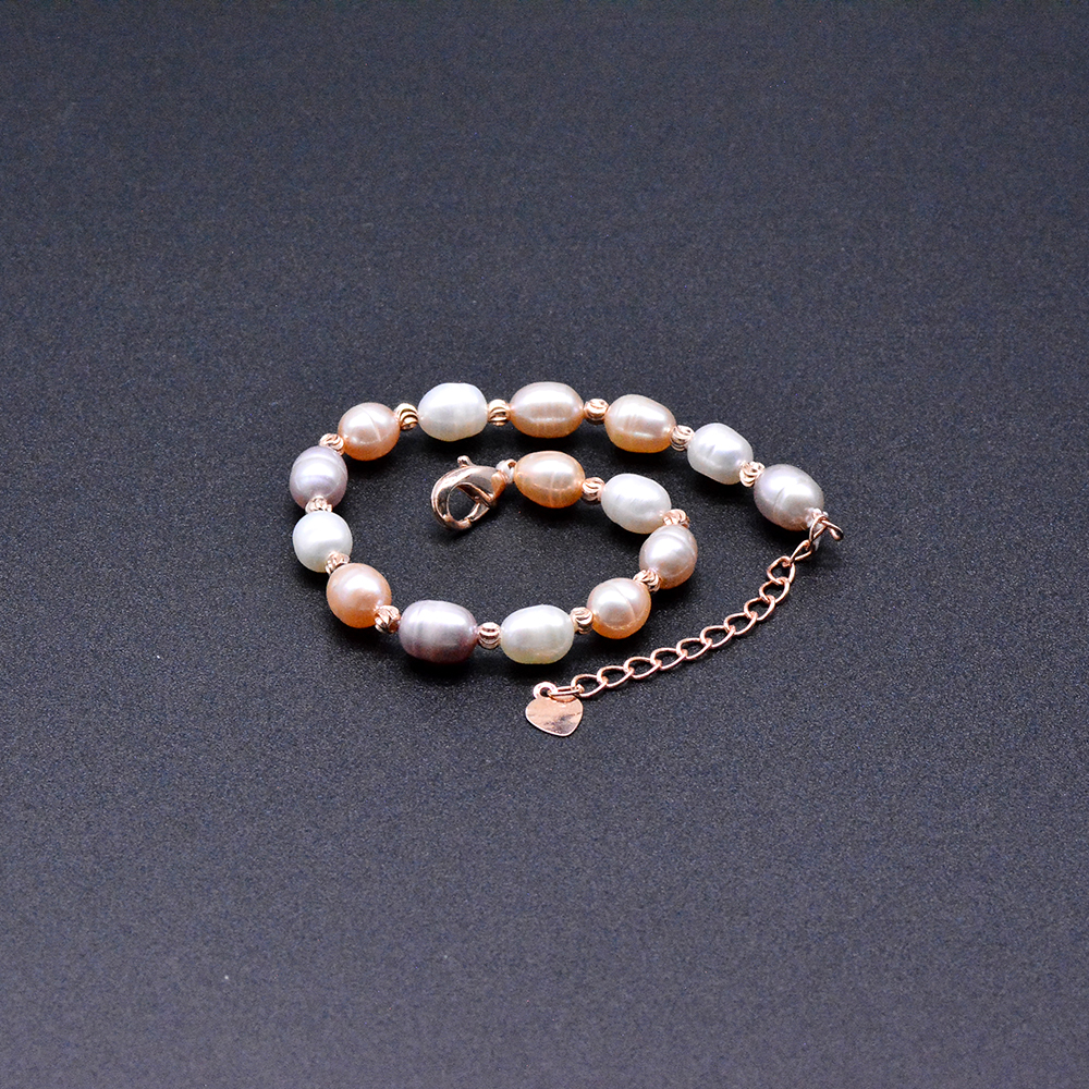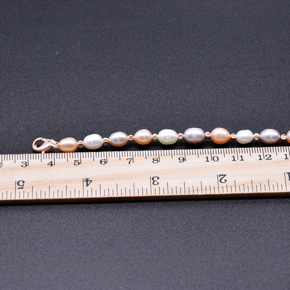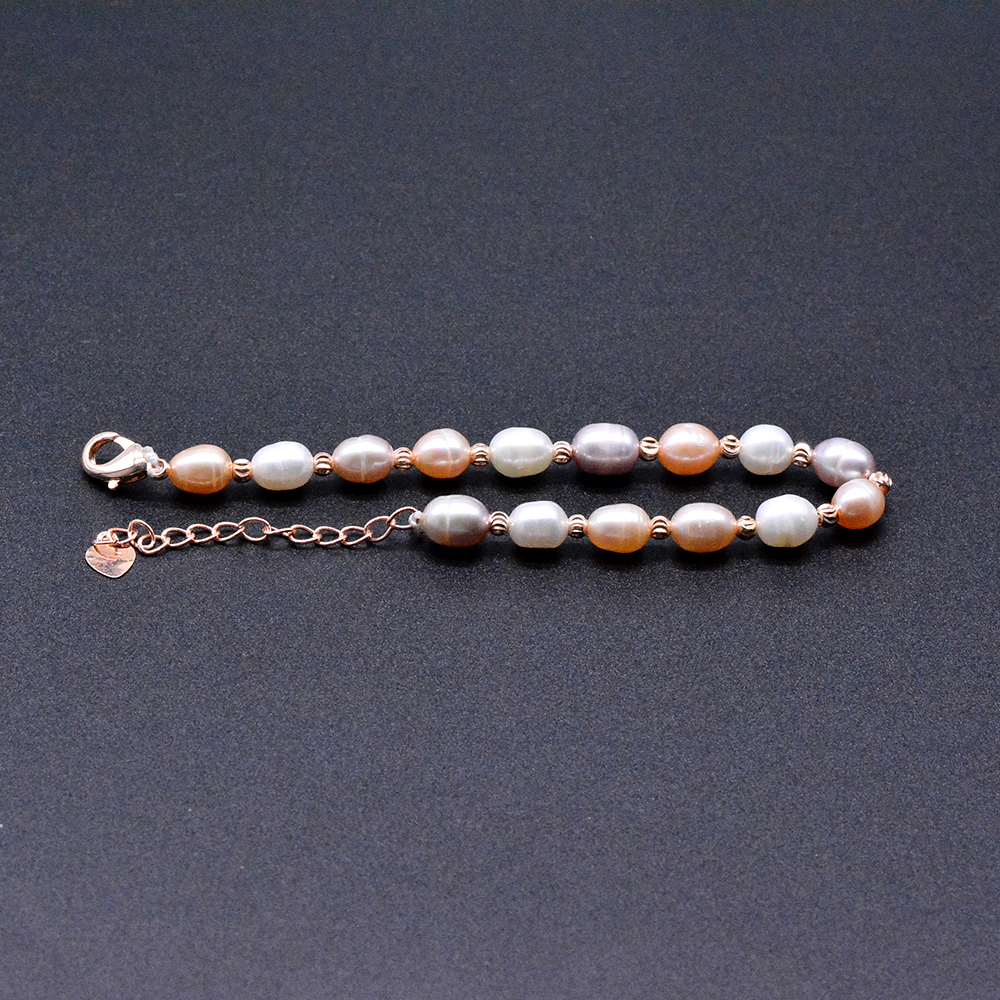 高品質淡水パールブレスレット オーバル 二色パール ゴールド 【1連】
