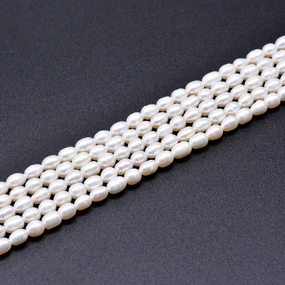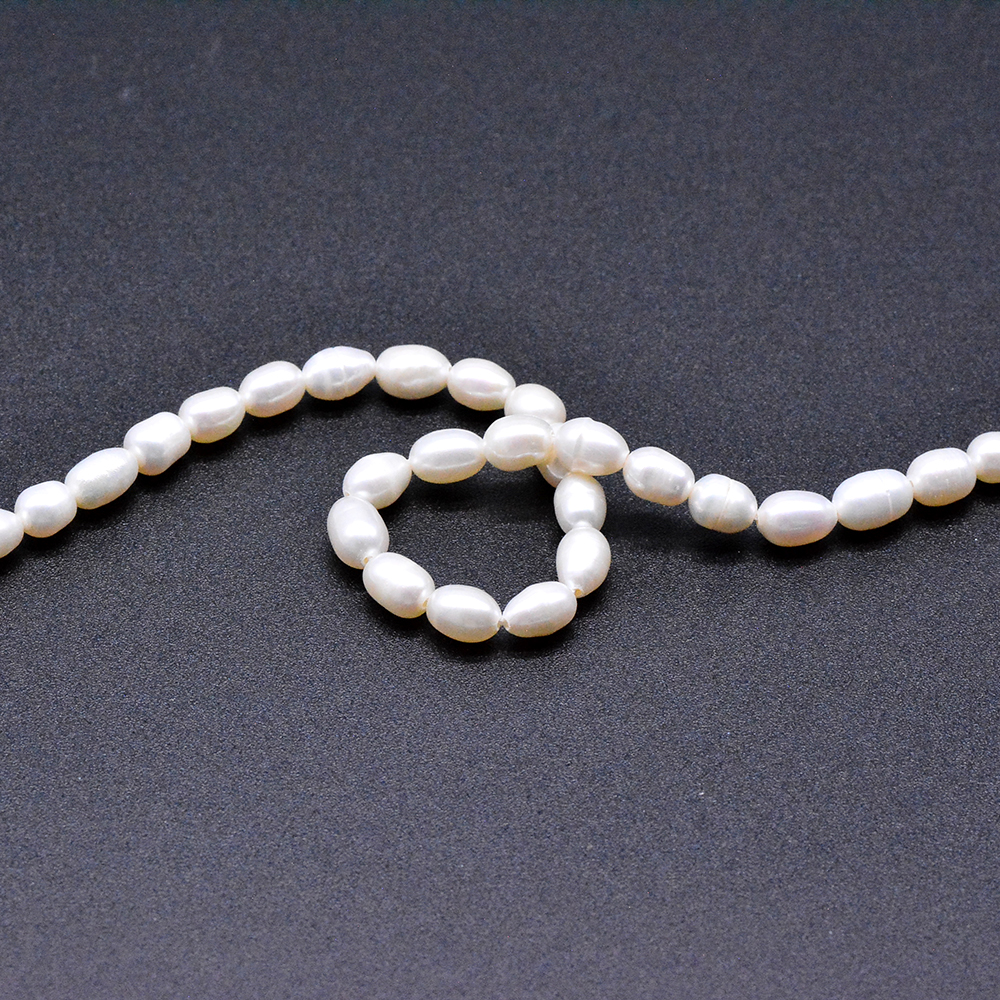 高品質淡水パールビーズ オーバル 天然素材 ホワイト 5mm【1連(約55ヶ)】