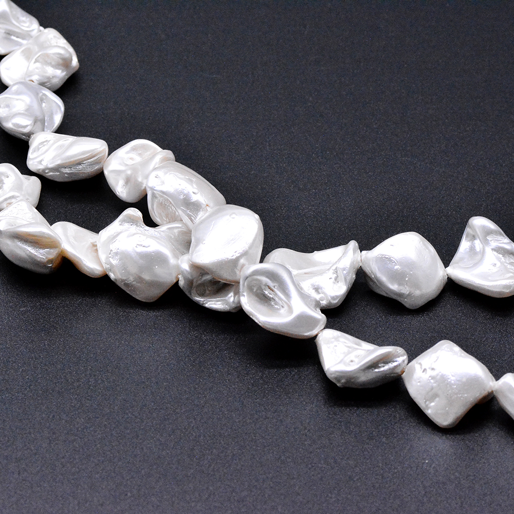 高品質淡水パールビーズ 不規則 天然素材 ホワイト 16-17mm【1連(約21ヶ)】