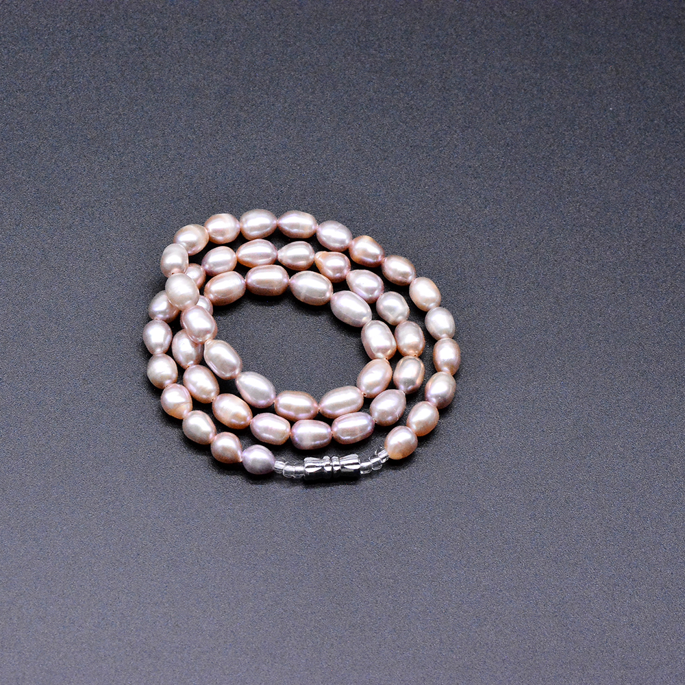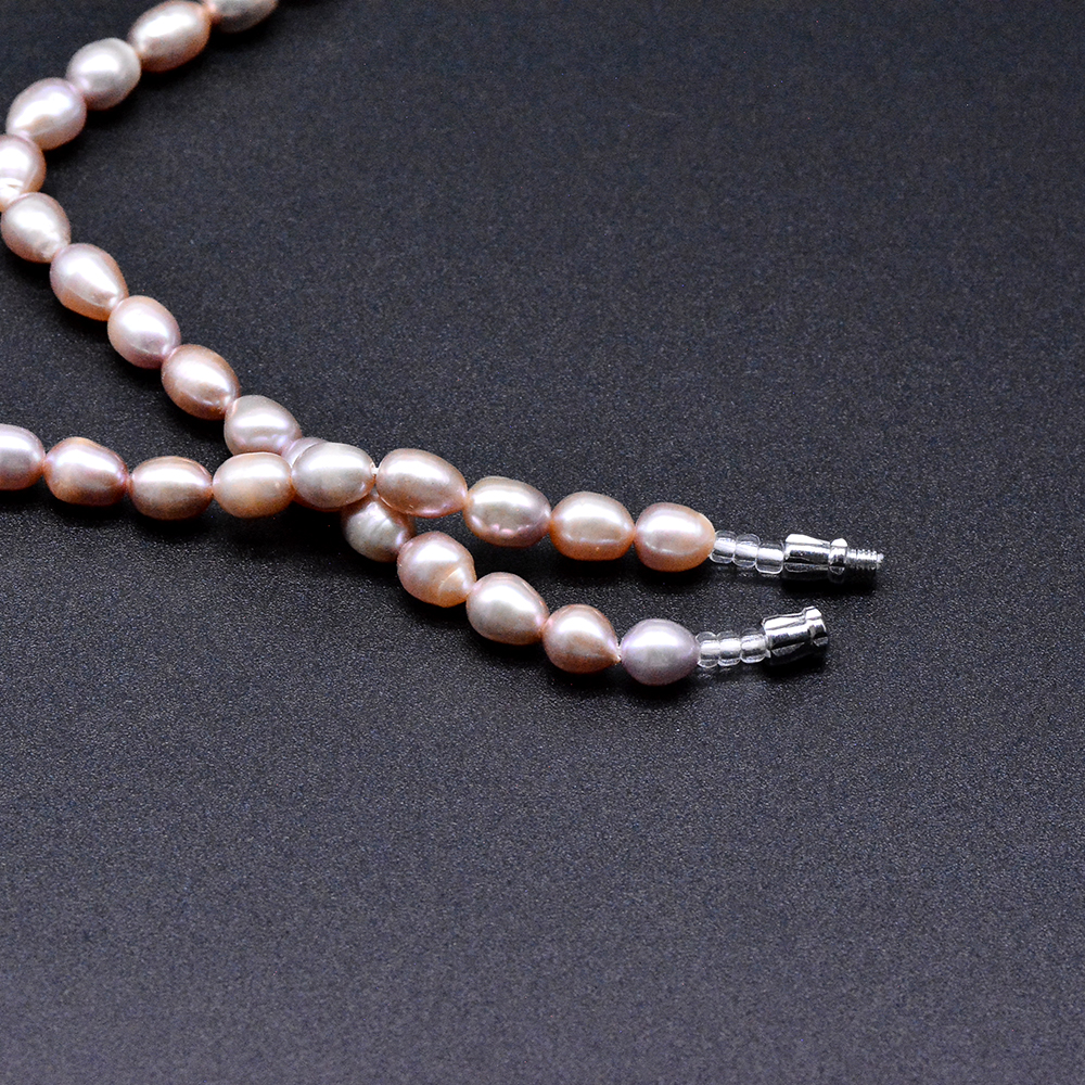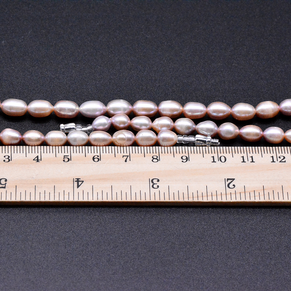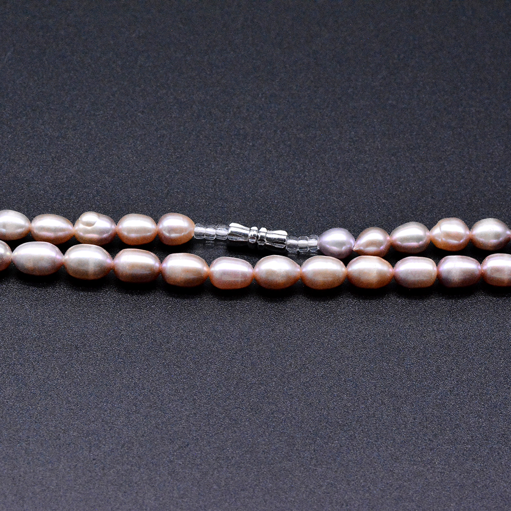 高品質淡水パールネックレス オーバル 天然素材 ピンク 6-7mm【1連(約425mm)】