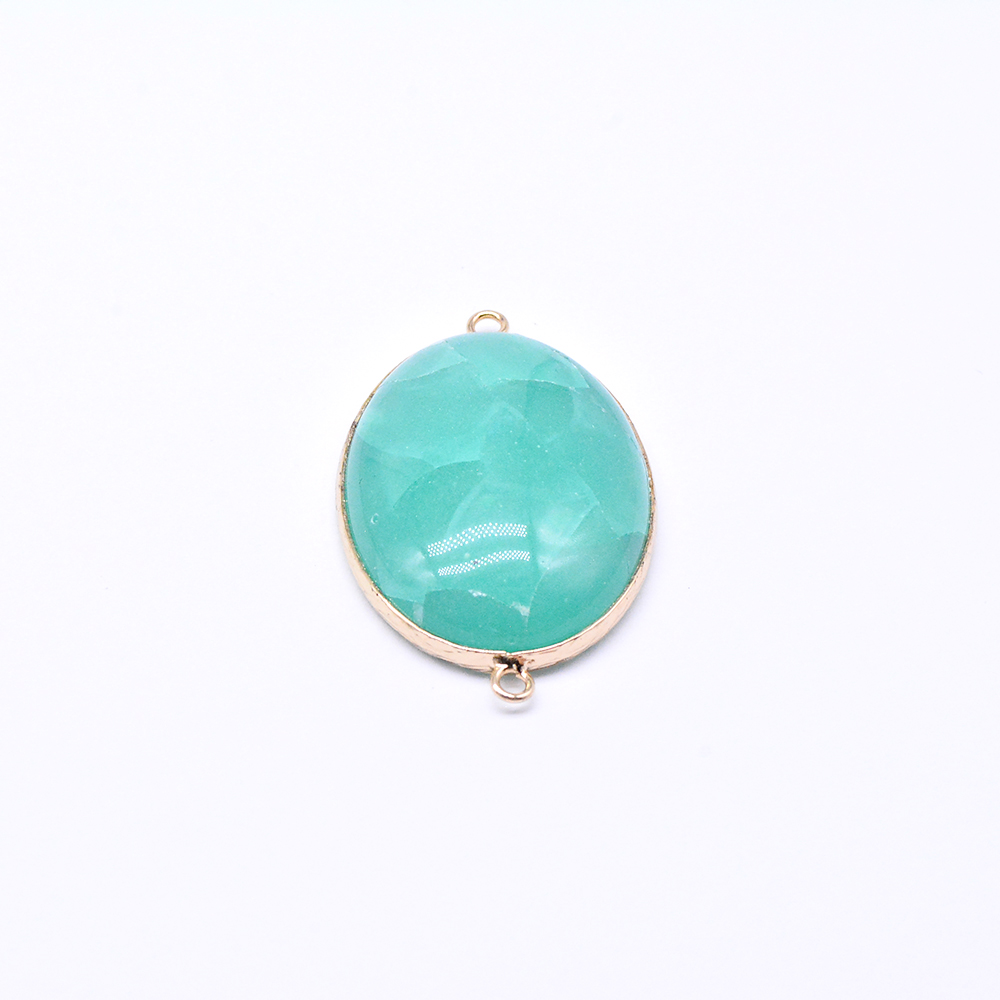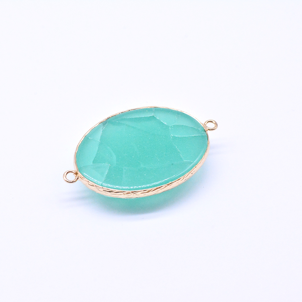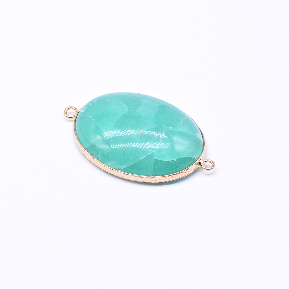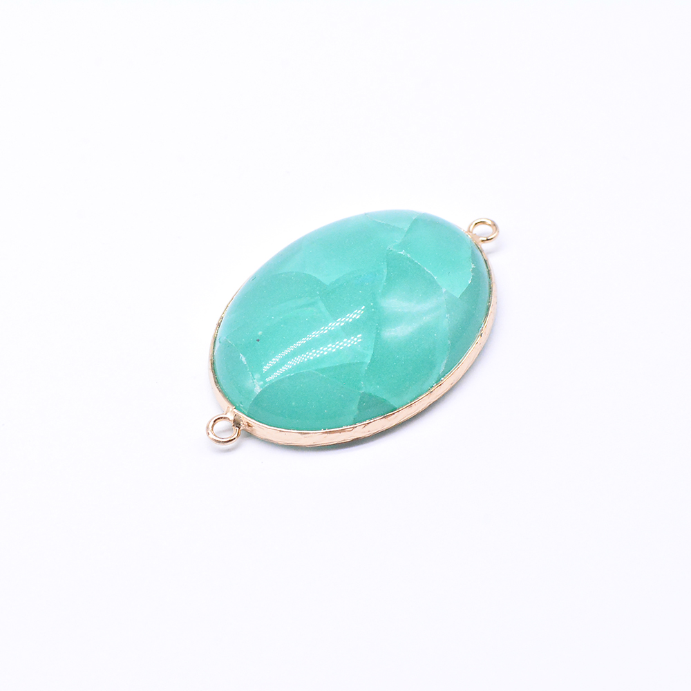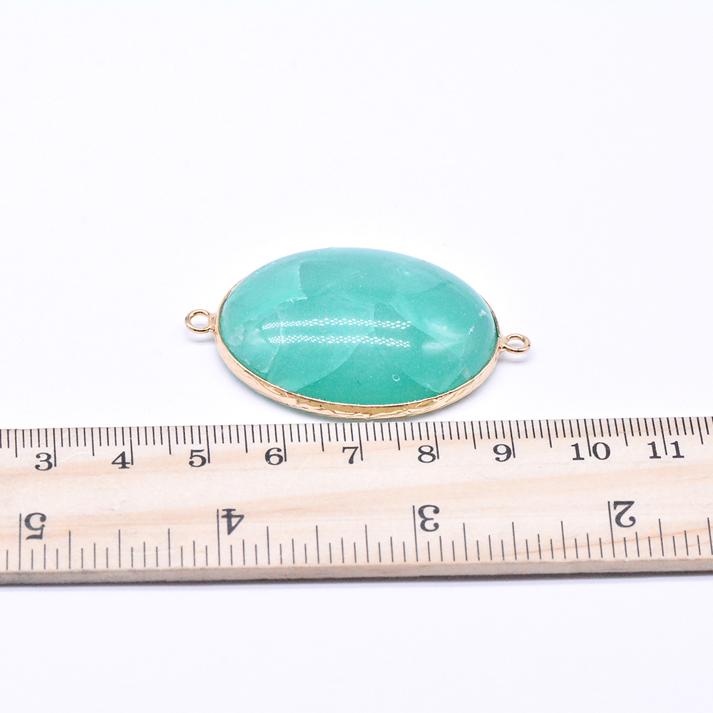 天然石コネクターチャーム グリーンアゲート 楕円形 2カン 29×47mm ゴールド (1ヶ)