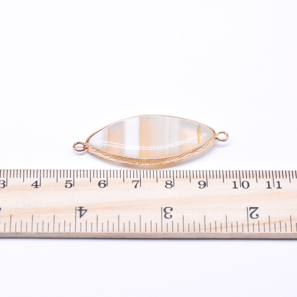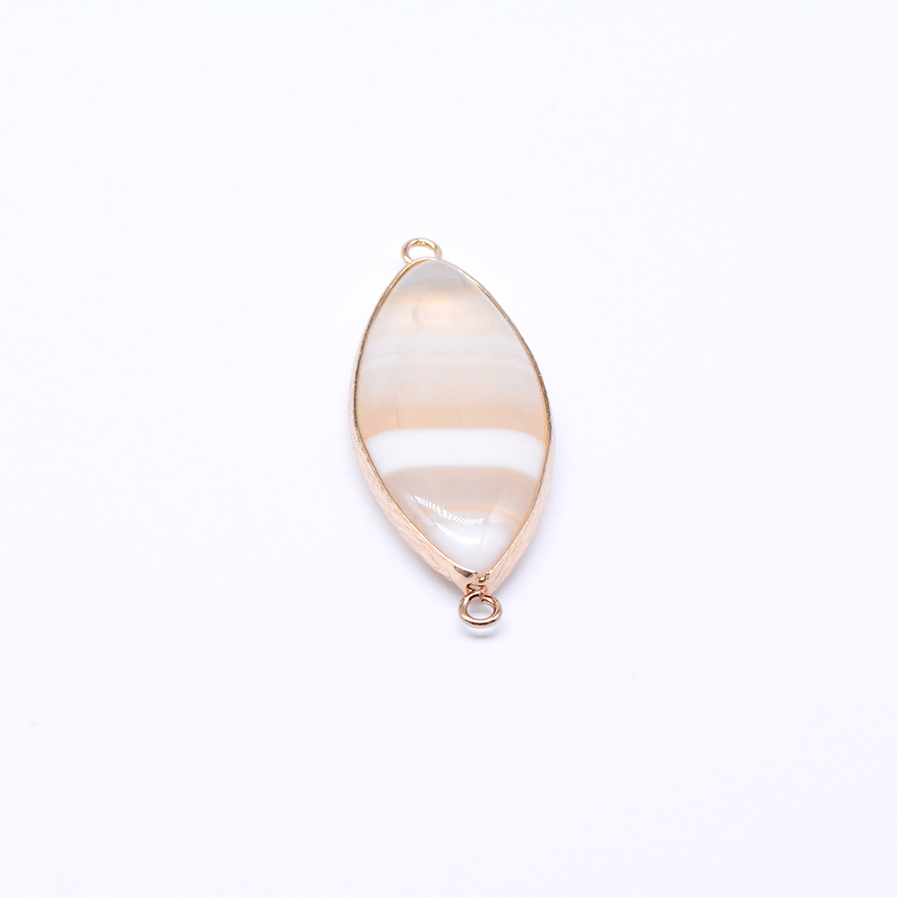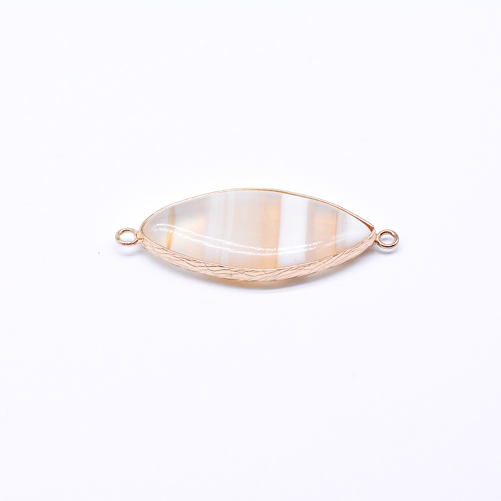 天然石コネクターチャーム オフホワイトアゲート マーキス型 2カン 19×48mm ゴールド (1ヶ)